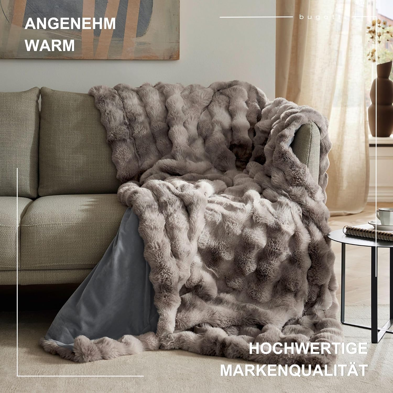 CLARA bedding nabízí Luxus na dosah—Bohatý výběr materiálů, barev a vzorů.• Exkluzivní deka - bugatti - z imitace kožešiny v šedé barvě. • Extrémně měkká a mazlivá.• Materiál - kožešina - 100% polyester.• Materiál - rubová strana - 100% polyester.• Deka v rozměru 150x200cm.• Vhodná pro chladné večery u krbu, televize nebo při čtení.• Vyrobeno v Německu.• Vysoká elegance pro lenošení i pro zahřátí a také jako dekorace interiéru.• Styl pro Váš interiér - Pohoda pro Vás.