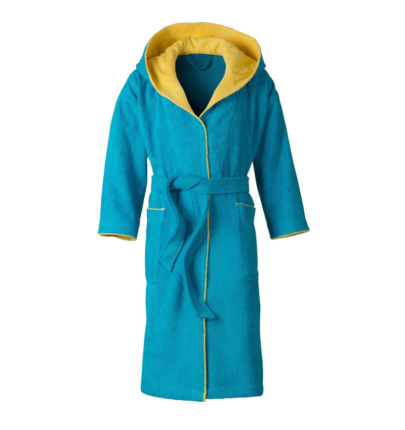 CLARA bedding nabízí Luxus na dosah—Bohatý výběr materiálů, barev a vzorů.• Dětský a Baby Župánek - DUO COLOR - Tyrkys a Žlutá nebo Marine a Blankyt. • Froté 100% Bavlna (360g/m²).• Župánek má kapuci, dvě kapsy a pásek na zavazování.• Měkký a příjemný k pokožce.• Kouzlo měkkosti a hřejivé pohlazení.• Velikosti:.- Velikost délky 128 cca: 90cm- Velikost délky 140 cca: 100cm- Velikost délky 152 cca: 110cm- Velikost délky 164 cca: 120cm• Koupání je zábavou.