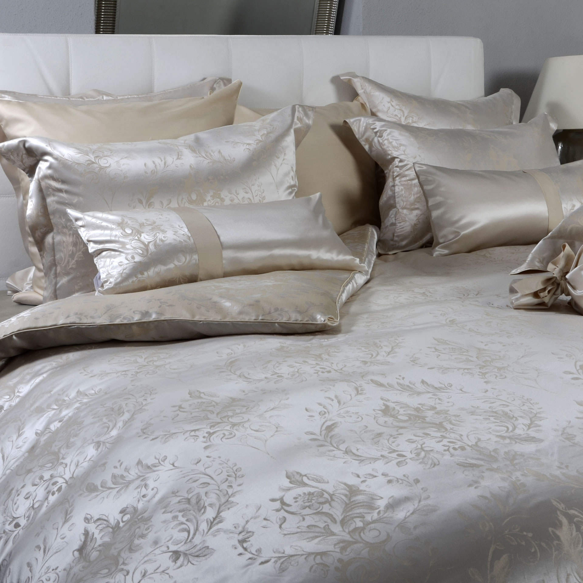 CLARA bedding nabízí Luxus na dosah—Bohatý výběr materiálů, barev a vzorů.• Hedvábné povlečení "Heritage" představuje klasický vzor s květinovými tvary. Jemná realizace působí nadčasově a dodá vaší ložnici vznešenou atmosféru francouzských zámků a jedinečnou bohatou atmosféru této doby. Povlečení "Heritage" je vyrobeno z nejjemnějšího lesklého saténu. Nadčasovosti je dosaženo použitím vysoce kvalitního divokého hedvábí Tussah, které se vyznačuje zvláštním barevným tónem, krásnou přirozenou barvou a mírným skvrněním. Asymetrické květinové tvary umožňují, aby se v látce projevila svoboda designu. Přírodní charakter hedvábného povlečení "Heritage" vám přinese krásné sny. • Pravé hedvábí - gramáž přibližně 105 g/m², což odpovídá přibližně 28 momme.• Vyrobeno v Německu• Hedvábné ložní prádlo může absorbovat až deset procent své hmotnosti, aniž by bylo vlhké. Hedvábí je ideální pro léto i zimu, za horkých nocí poskytuje chladivou svěžest a při nízkých teplotách hřeje. 100% přírodní vlákna, měkká, pružná a velmi lehká. Hedvábné ložní prádlo z čistého morušového hedvábí je nejen ušlechtilé, smyslné a luxusní, ale také prospěšné pro vaše zdraví a pohodu.- Hedvábné povlečení je vhodné zejména pro osoby trpící neurodermatitidou- Vysoká absorpce vlhkosti a regulace teploty: ideální proti pocení.- Hypoalergenní, antistatické, antibakteriální, ideální pro osoby s astmatem, alergií na prach a dalšími kožními chorobami.- Extrémně jemný a uklidňující účinek na nervový systém- Snižuje se výskyt roztřepených konečků a rozcuchaných vlasů. Méně mastné vlasy díky potlačení nadměrné tvorby kožního mazu.- Zabraňuje tvorbě vrásek a vrásčitých míst na obličeji- Chrání a zklidňuje obličej a oční okolí během spánku• Pokyny pro péči: Hedvábné ložní prádlo perte odděleně, naruby, na jemný cyklus při 30°C stupních bez dalšího prádla. Vezměte prosím na vědomí, že hedvábí nebo hedvábné směsi nejsou vhodné do sušiček nebo mandlů. Při sušení venku by hedvábné ložní prádlo nemělo být vystaveno přímému slunečnímu záření. Lze žehlit mírně navlhčený při teplotě max. 110 °C. Nikdy hedvábné ložní prádlo nestříkejte parfémem nebo deodorantem a neperte ho v bělidle. Používejte pouze tekuté prací prostředky na hedvábí nebo vlnu. Tkaninu nevyždímejte. Hedvábné ložní prádlo vždy žehlete z rubové strany; nepoužívejte k jeho navlhčení vodu navíc.• Odpovídající prostěradlo HELIOS Tussah, nebo vzorované prostěradlo Heritage, k dostání samostatně.• Speciální rozměry ložního prádla jsou k dispozici na vyžádání.• Toto zboží je vyráběno na zakázku z metráže hedvábí na základě konkrétních požadavků kupujícího.• Na vyžádání je možno zapůjčit barevnici (vzorník hedvábí) pro lepší možnost výběru.