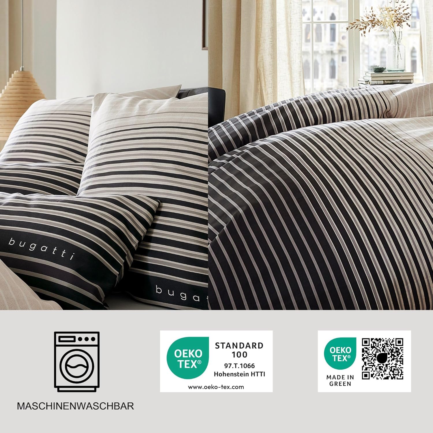 • Povlečení působí velmi moderně, kontrastně a elegantně – je ideální pro interiéry s výrazným charakterem a designovým přístupem.