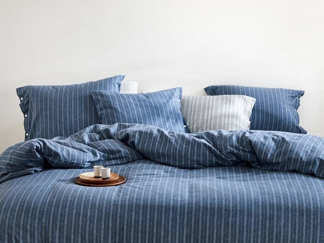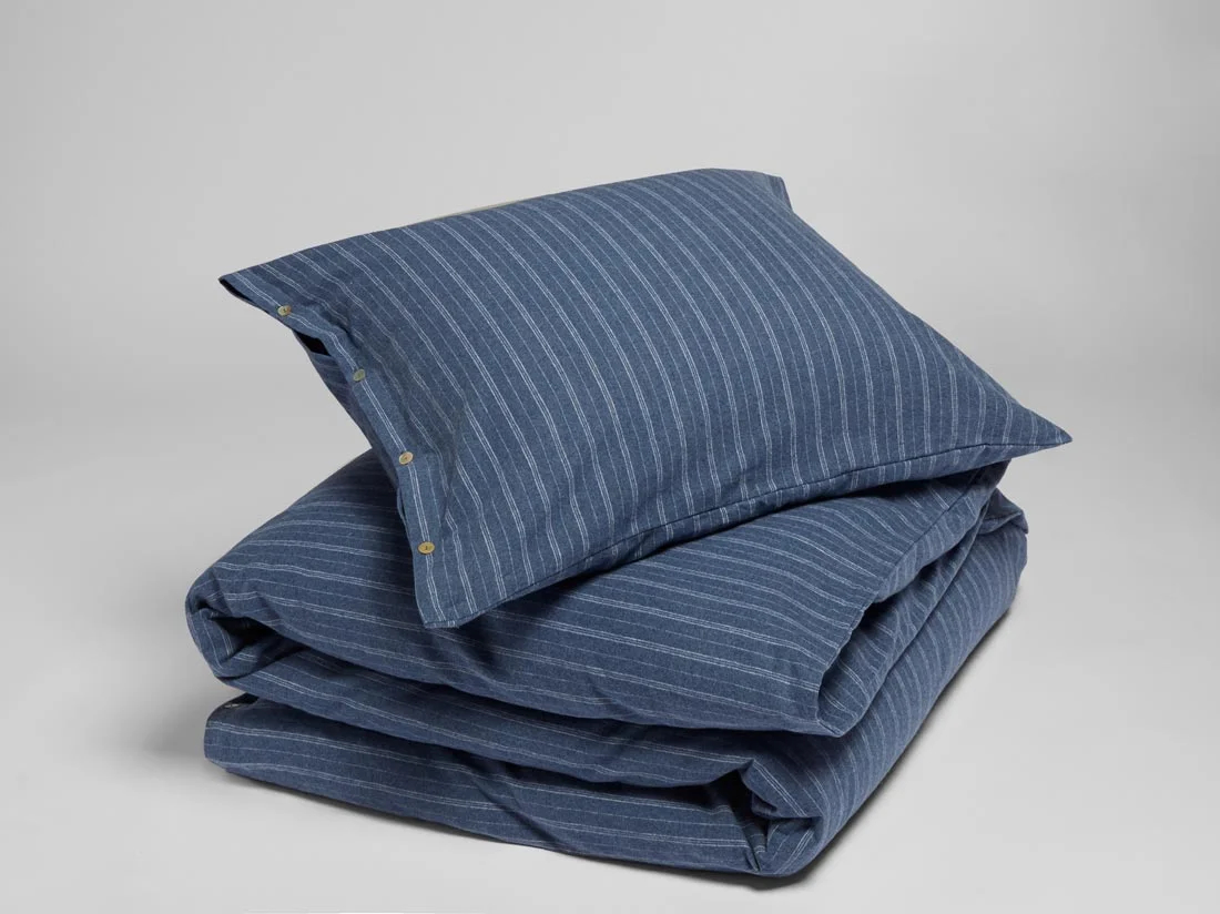CLARA bedding nabízí Luxus na dosah—Bohatý výběr materiálů, barev a vzorů.• Jednobarevná hřejivá ložní souprava Denim-Bílá Proužek - podmanivá elegance podzimních a zimních dnů.• Každý, kdo se rozhodne pro sametový flanel, chce maximální měkkost. Stoprocentní organická bavlna je tkaná a následně zdrsněná, až je mimořádně měkká, hebká a hřejivá. • Flanel je utkán z přízí v různých barvách, což mu dodává živý charakter - optika melánž se vzorem bílých pruhů čímž vnáší šarm a útulnou atmosféru.• Sametový flanel jako materiál je obzvlášť měkký a hebký. Materiál má také velmi hřejivé vlastnosti a je ideální zejména pro chladné zimní noci. Když se zachumláte do tohoto povlečení, brzy se ponoříte do klidného spánku, zatím co venku sněží nebo se žení všichni čerti. • Nechte se rozmazlovat tímto úžasně mazlivým materiálem.• Povlečení je z Bavlněného flanelu - 100% bio bavlna - BIO (GOTS) - z kvalitních jemných česaných a mercerizovaných bavlněných přízí.• S příjemným omakem a hřejivým účinkem.• Chladné zimní a podzimní noci nejlépe strávíte v tomto měkkém sametovém flanelovém povlečení. Pokud jde o měkkost, sametový flanel zůstává nesporným lídrem. Organická bavlna prochází speciální úpravou, než si může skutečně říkat sametový flanel. Během tohoto řemeslného procesu jsou nejjemnější vlákna kartáčována, aby získala větší objem.• Nechte se rozmazlovat tímto úžasně mazlivým materiálem.• Materiál je prodyšný, flaušově měkký.• Běžná údržba. Praní do 40°C. Možno sušit v sušičce.• Ozdobné perleťové knoflíky.• Vhodná barva prostěradla - v nabídce pod produktem, nebo dle Vašeho výběru. • Vychutnejte si přednosti tohoto hřejivého materiálu.• Povlečení je možné doplnit o jednobarevné povláčky na malé mazlivé polštářky a rolky z jersey (100% bavlna).• Hřejivě hebký komfort spaní.