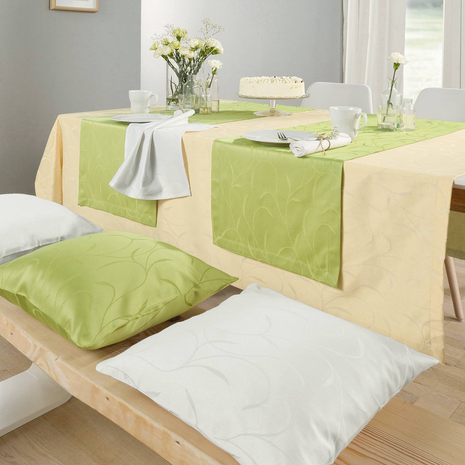 CLARA bedding nabízí Luxus na dosah—Bohatý výběr materiálů, barev a vzorů.• Ubrus - Úponky - Damašek - Elegance. Elegantně a moderně prostřeno.• Žakárová damašková střední třída ubrusů "Úponky". • Elegantní, nadčasový a zvláště výrazný díky jemnému tkanému vzoru úponků - pro mnoho příležitostí.• Tekutiny, jako je káva, džus nebo červené víno, se jednoduše slijí a lze je opatrně setřít.• Velmi pěkné pro dotvoření dekorace slavnostní i každodenní tabule.• Stylový vytkaný motiv.• Nadčasový, módní, vhodný ke kombinaci. • Žehlení po zadní straně po vyprání osvěží barevnost. • Opracováno kvalitním obálkovým lemem.• Materiál 60 % Baumwolle 40 % Polyester.• Praní do 60°C.• Nechte se inspirovat vysokou kvalitou s ochranou proti skvrnám. • Krása, kvalita a tradice pro vaši kuchyň i jídelnu.