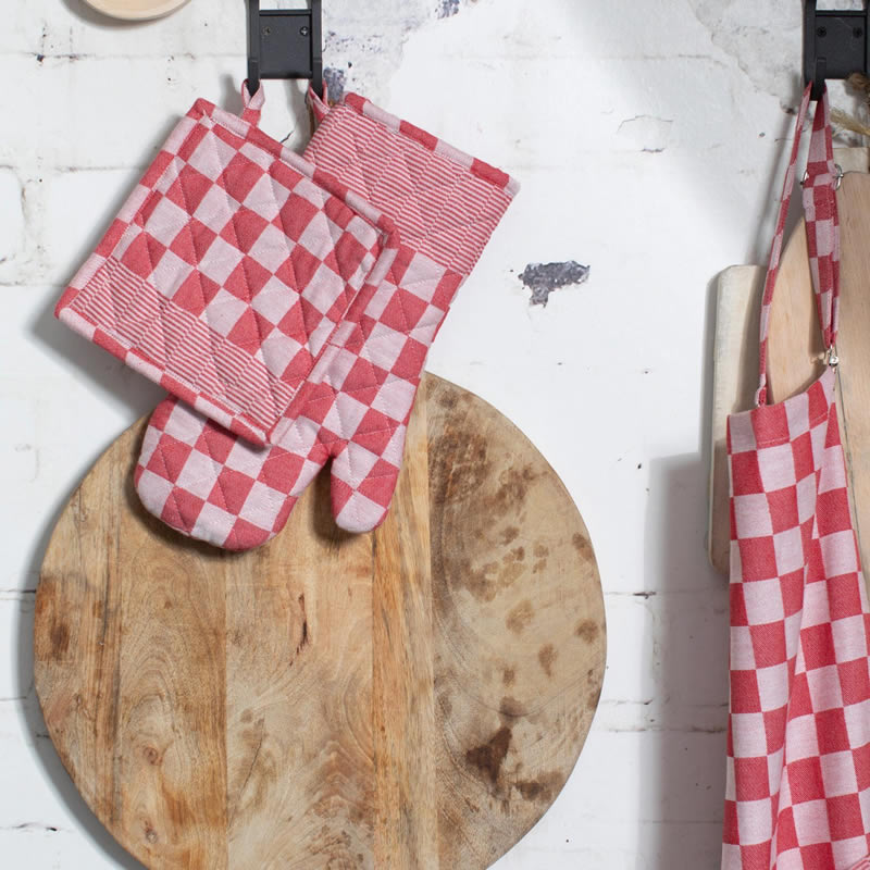 Kuchařská Rukavice - Sada - Duo Kostka Kombinace - Červená - Venkovská Romantika