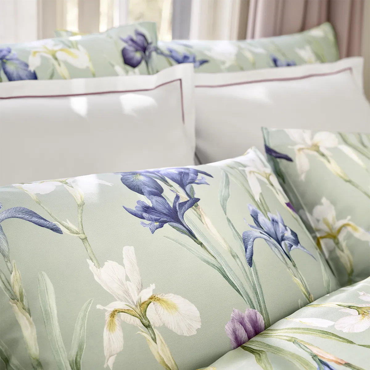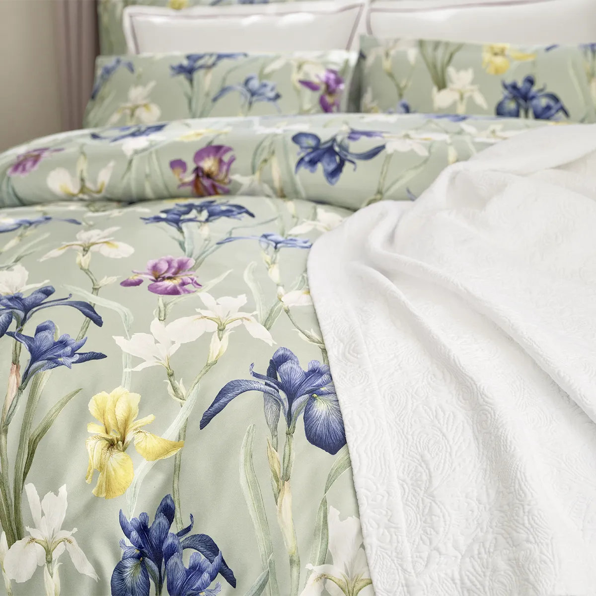 CLARA bedding nabízí Luxus na dosah—Bohatý výběr materiálů, barev a vzorů.• Design CHARLOTTE vás zve na procházku téměř nekonečnou loukou rozkvetlých kosatců ve vašem vlastním snovém světě. • Květy na saténovém ložním prádle se k sobě naklánějí a odklánějí s obdivem a oddaností, zatímco listy v pozadí spočívají na šalvějově zeleném pozadí. • Tmavé a někdy i jasně zbarvené akvarelové květy v sametově modré až fialové, zlatožluté a slonovinové barvě vystupují do popředí a těší se vaší pozornosti.• Umělecký ručně malovaný design z ateliéru v Turbenthalu.• Tato povlečení patří k nejluxusnějším v Evropě.• Moderní technologie a vynikající řemeslné zpracování, ale také filozofie designu a povědomí o životním prostředí. • Vysoce kvalitní Jemný Švýcarský Mako Satén - 100% česaná extra dlouhovlákenná mako bavlna - Satén Noblesse.• Jedná se o bavlněný satén, který je mercerisován. Tato úprava zvyšuje lesk látky a také odolnost proti opotřebování, tím je zaručena dlouhá životnost výrobku. • Materiál je velmi jemný, lehký a příjemný k pokožce. • Povlečení je možné doplnit i o jednobarevné povláčky z kolekce Luxusní jednobarevné povlečení ze švýcarského mako saténu Schlossberg - nebo mako jersey Royal - Schlossberg.• Toto povlečení je možné nechat zhotovit dle přání i s knoflíkovým uzávěrem, polštáře se sámem apod... V případě zájmu nás prosím kontaktujte.• Smyslná lehkost bytí.