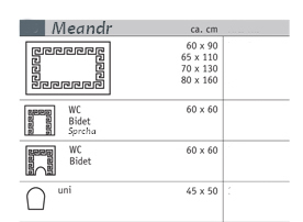 CLARA bedding nabízí Luxus nadosah—Bohatý výběr materiálů, barev a vzorů.• Luxusní koupelnový doplněk - koupelnová předložka - kobereček - Bílá & Zlatý Lurex. • Meandrový vzor - koupání jako na zámku.• Tento koupelnový kobereček dodá koupelně elegantní nádech.• Osvědčený materiál: 100% acryl. Velmi rychle schne.• Předložky jsou příjemně měkké, s vysokým vlasem (výška vlasu cca. 30mm).• Předložky mají na spodní straně latexovou vrstvu.• Velikost - 60x60cm.• Velikost - 60x90cm.• Velikost - 65x110cm.• Velikost - 70x130cm.• Velikost - 80x160cm.• Velikost - 60x60cm - svýstřihem pro WC a bidet.• WC povlak víka - jednobarevný - 45x50cm.• Možnost praní do 30°C a sušit v sušičce na prádlo na nižší teplotu.• Koberečky Meandr jsou vhodní pro použití i při podlahovém vytápění.• Vyrobeno v Německu - Vysoká kvalita.• Elegantní koupelnová předložka změní i Vaší koupelnu v exkluzivní.• Tento kobereček lze do výroby zadat v dalších 99 barvách podle vzorníku v obrázcích. Požadovanou barvu lze napsat do poznámky ve 4. kroku objednávky nebo nás prosíme pro upřesnění požadavku kontaktujte.