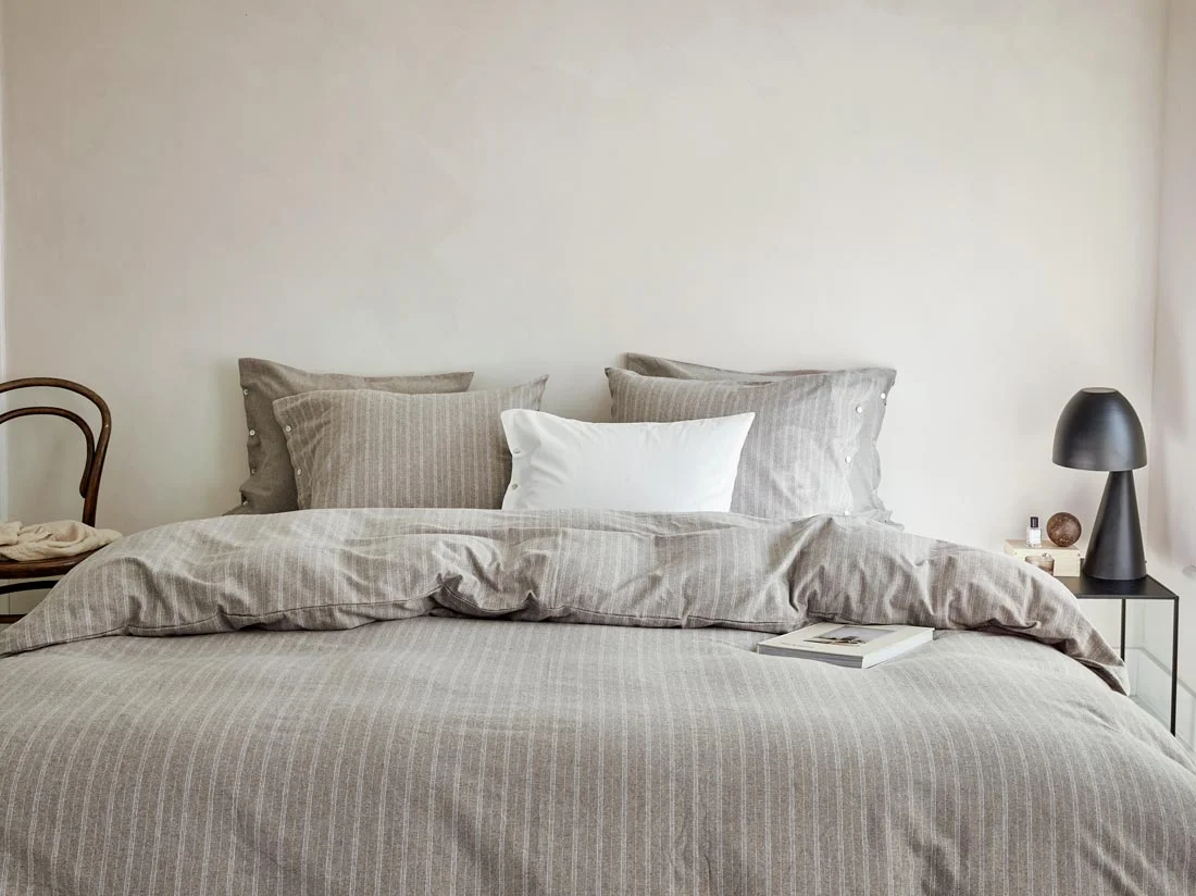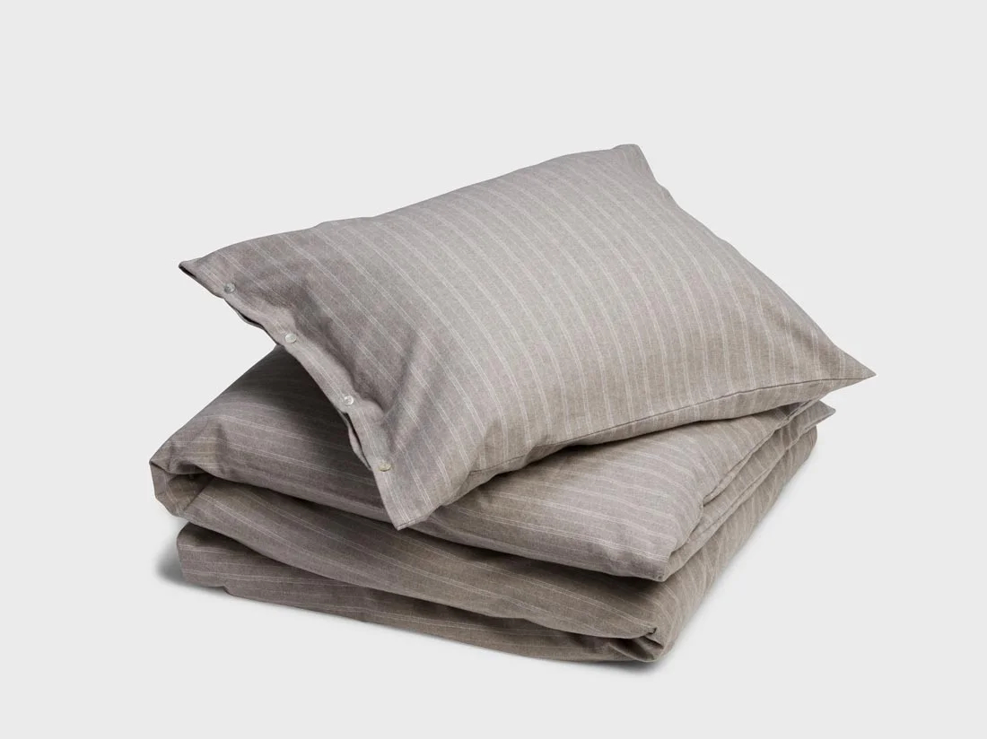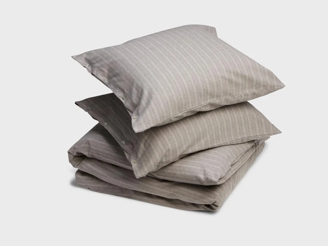 Flanelové Povlečení - UNI - Kamenná Hnědá Proužek - City Chic - BIO Bavlna - Udržitelná Móda