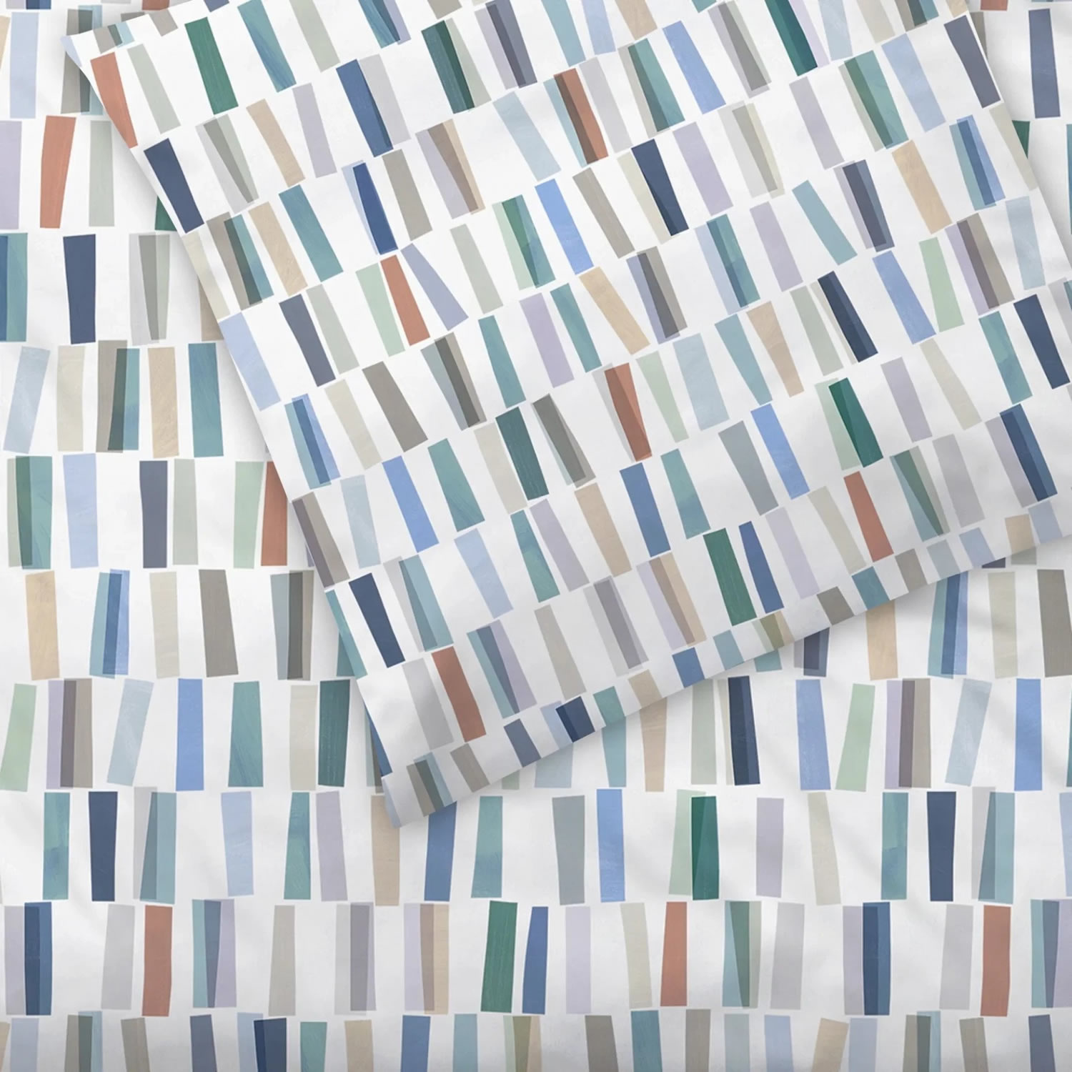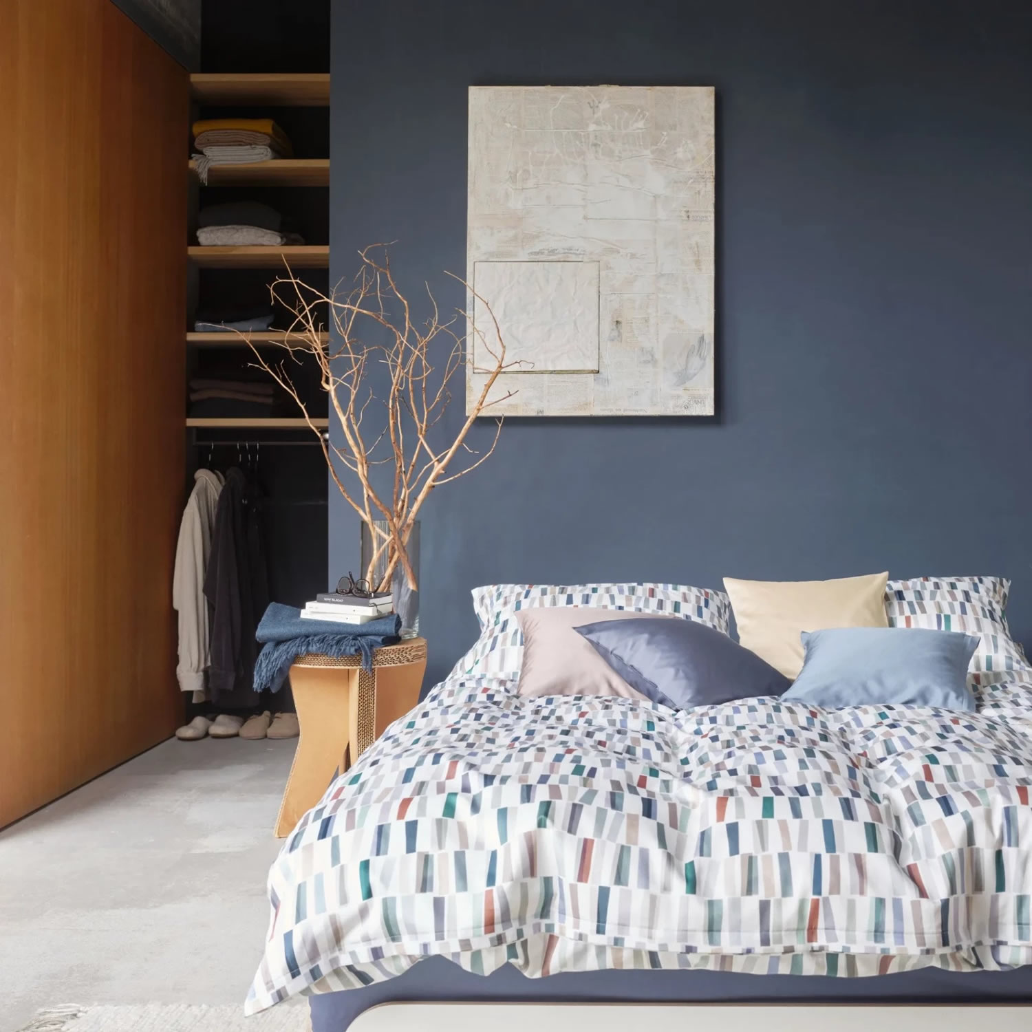 CLARA bedding nabízí Luxus na dosah—Bohatý výběr materiálů, barev a vzorů.• Ložní prádlo Schlossberg "Vito" se prezentuje moderními geometrickými vzory. Různě uspořádané obdélníky vytvářejí lehce hravý vzhled.• Abstraktní vzor s seřazenými kvádry, které jsou uspořádány do řady, některé tančí mimo řadu a vytvářejí mírný pohyb. • Tlumené barvy s množstvím šedých a béžových tónů, jemná šalvějová zeleň, tmavě tmavě modrá, jemná fialová, akcentovaná cihlově oranžová a lahvově zelená. • Listy papíru byly natřeny kvašovou barvou, stává se viditelnou díky tahům štětcem a jemným barevným přechodům, různé čtverce byly ručně vystřiženy nůžkami a uspořádány do atmosférické plochy.• Umělecký ručně malovaný design z ateliéru v Turbenthalu.• Tato povlečení patří k nejluxusnějším v Evropě.• Moderní technologie a vynikající řemeslné zpracování, ale také filozofie designu a povědomí o životním prostředí. • Vysoce kvalitní Jemný Švýcarský Mako Satén - 100% česaná extra dlouhovlákenná mako bavlna - Satén Noblesse.• Jedná se o bavlněný satén, který je mercerisován. Tato úprava zvyšuje lesk látky a také odolnost proti opotřebování, tím je zaručena dlouhá životnost výrobku. • Materiál je velmi jemný, lehký a příjemný k pokožce. • Vhodná barva prostěradla - perla – acier – glace z kategorie Luxusní prostěradla Schlossberg nebo dle Vašeho výběru.• Povlečení je možné doplnit i o jednobarevné povláčky z kolekce Luxusní jednobarevné povlečení ze švýcarského mako saténu Schlossberg - nebo mako jersey Royal - Schlossberg.• Toto povlečení je možné nechat zhotovit dle přání i s knoflíkovým uzávěrem, polštáře se sámem apod... V případě zájmu nás prosím kontaktujte.• Smyslná lehkost bytí.