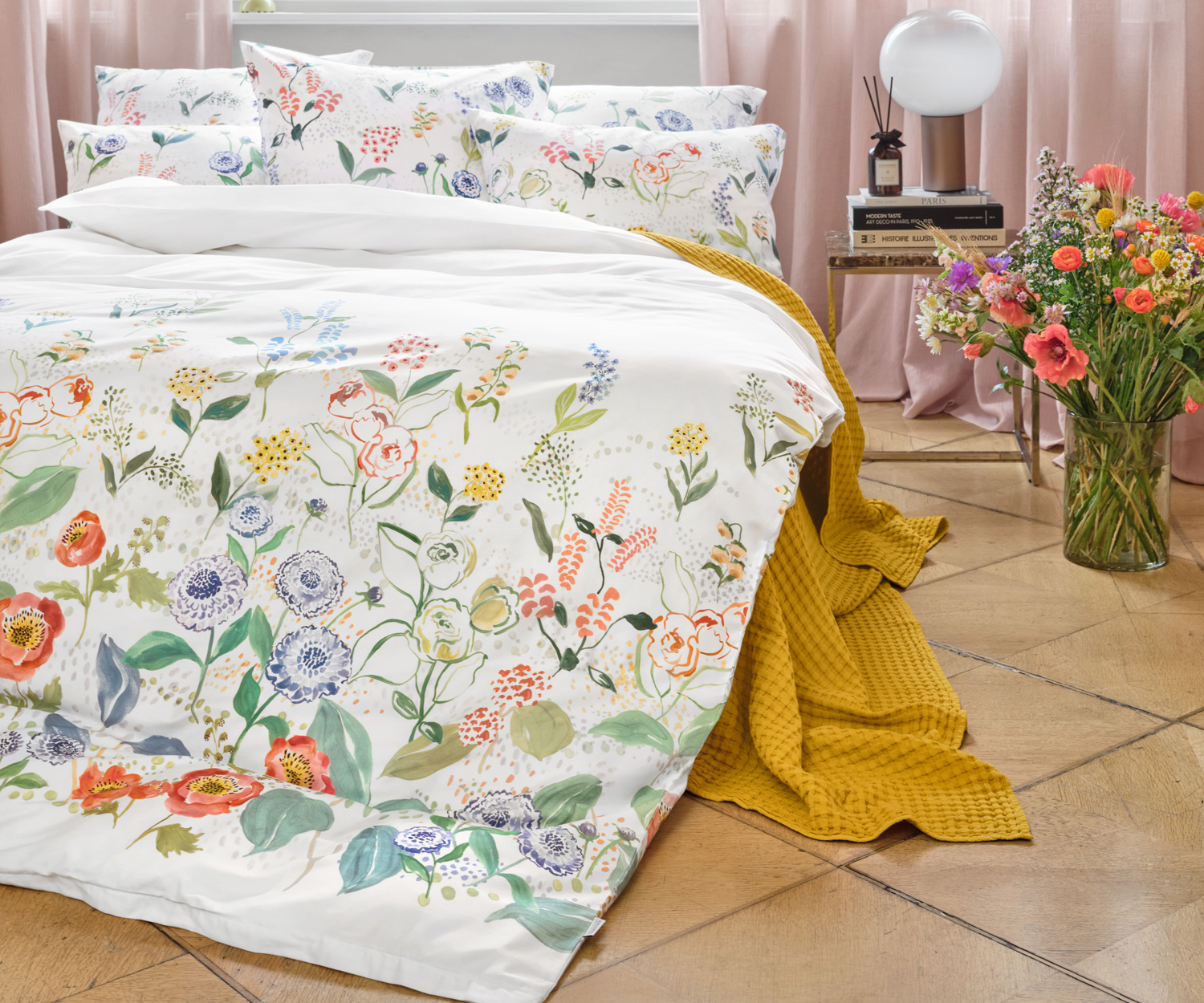 CLARA bedding nabízí Luxus na dosah—Bohatý výběr materiálů, barev a vzorů.• Design povlečení ANNIKA vás přenese na letní květinovou louku, která zdobí přikrývku okouzlujícím lemem abstraktních květů a listů. • Uměle navržené motivy inspirované vlčími máky, voňavými šeříky, romantickými růžemi a divokými lučními šalvějemi dodávají celkovému obrazu harmonickou rozmanitost. • Zářivá technika kvaše dodává květinovým motivům výrazný a barevný charakter. Nebeská modř, jemná fialová, paleta zelených tónů, meruňková, soumračná růžová, rezavě oranžová, šťavnatá červená a teplá slunečná žlutá vytvářejí svěží a zároveň útulnou atmosféru. • Ponořte se do světa ANNIKA a nechte se okouzlit zářivými barvami této letní květinové louky.• Umělecký ručně malovaný design z ateliéru v Turbenthalu.• Tato povlečení patří k nejluxusnějším v Evropě.• Moderní technologie a vynikající řemeslné zpracování, ale také filozofie designu a povědomí o životním prostředí. • Vysoce kvalitní Jemný Švýcarský Mako Satén - 100% česaná extra dlouhovlákenná mako bavlna - Satén Noblesse.• Jedná se o bavlněný satén, který je mercerisován. Tato úprava zvyšuje lesk látky a také odolnost proti opotřebování, tím je zaručena dlouhá životnost výrobku. • Materiál je velmi jemný, lehký a příjemný k pokožce. • Vhodná barva prostěradla - glace - lilas - palmier z kategorie Luxusní prostěradla Schlossberg nebo dle Vašeho výběru.• Povlečení je možné doplnit i o jednobarevné povláčky z kolekce Luxusní jednobarevné povlečení ze švýcarského mako saténu Schlossberg - nebo mako jersey Royal - Schlossberg.• Toto povlečení je možné nechat zhotovit dle přání i s knoflíkovým uzávěrem, polštáře se sámem apod... V případě zájmu nás prosím kontaktujte.• Smyslná lehkost bytí.