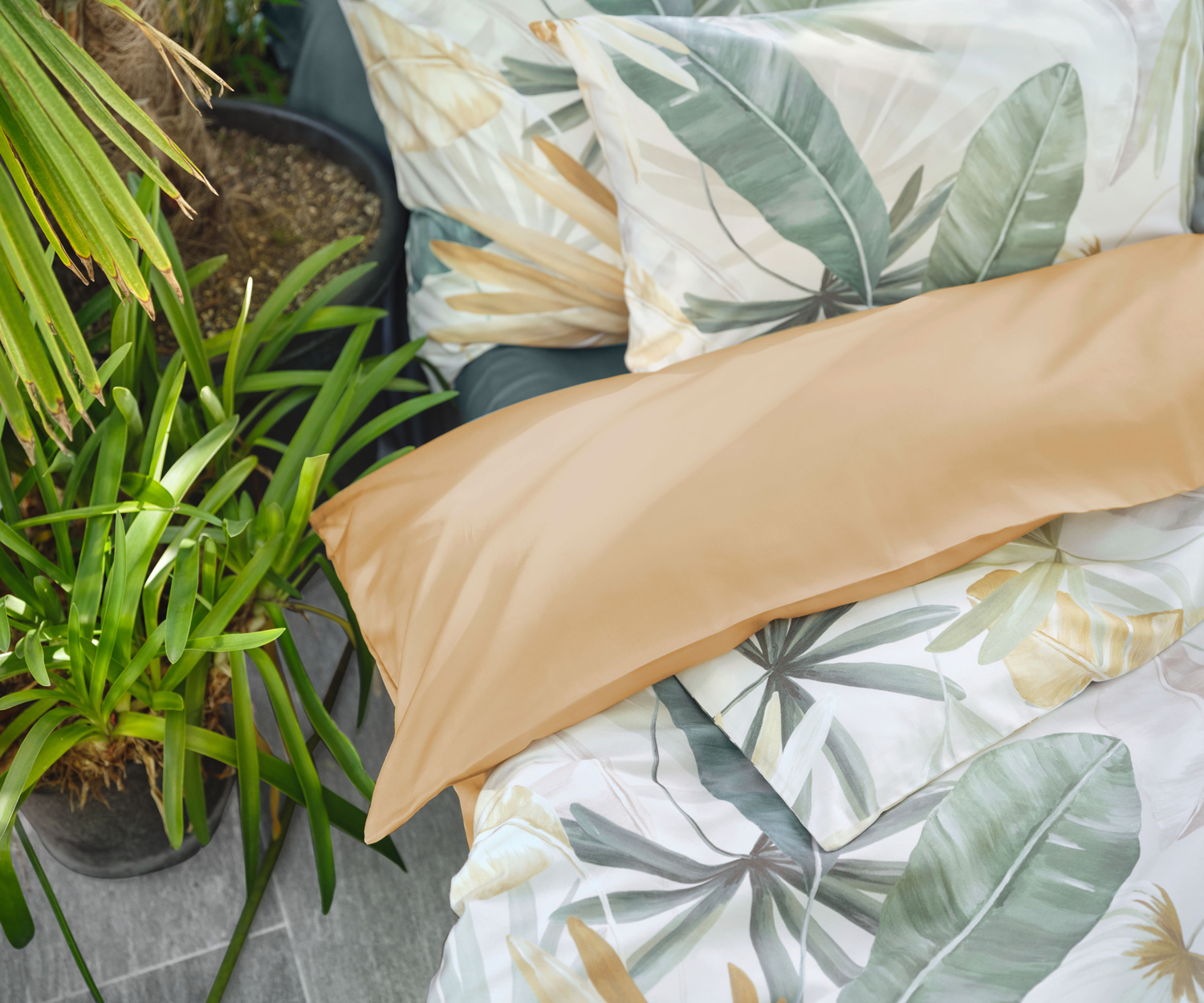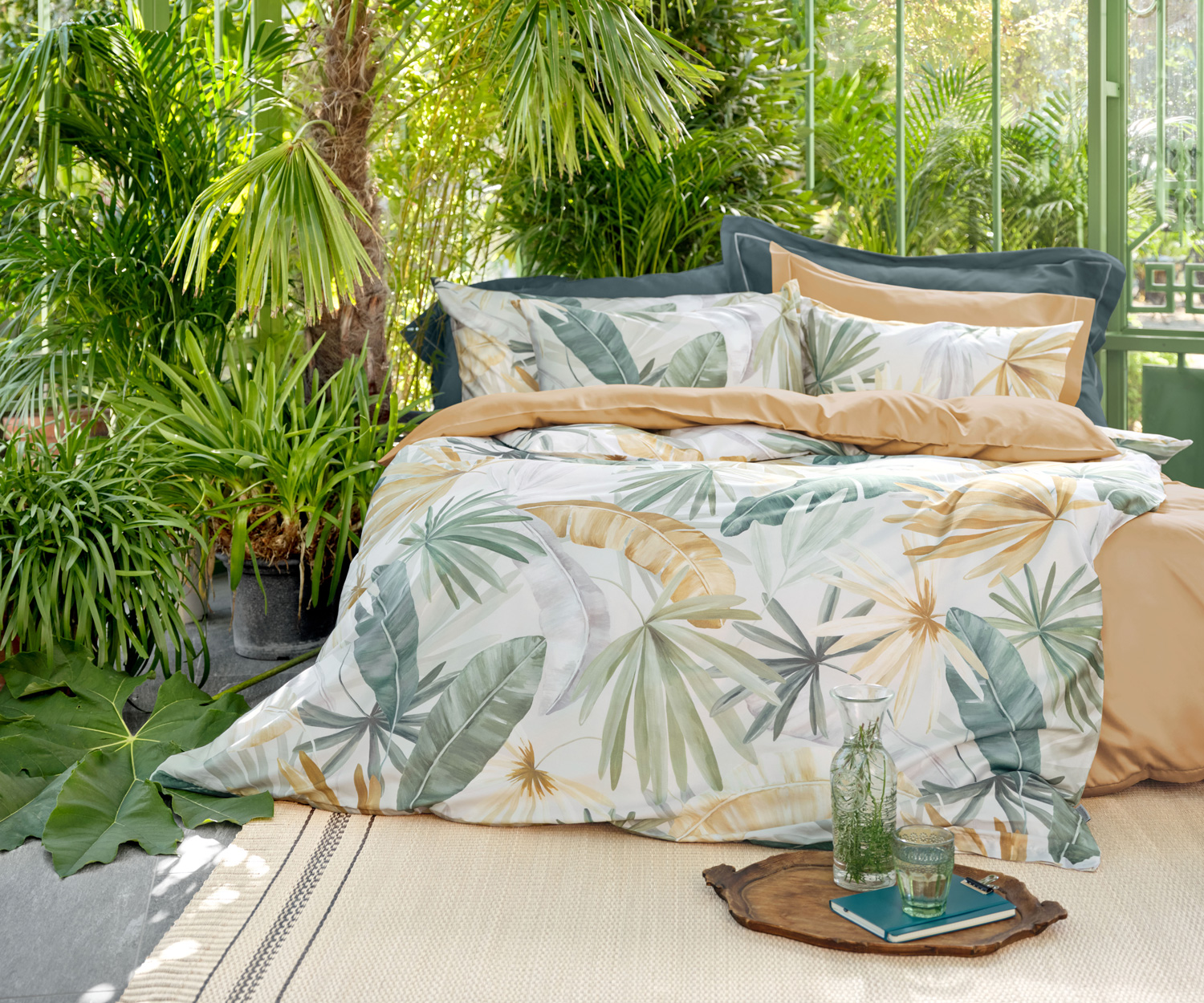 CLARA bedding nabízí Luxus na dosah—Bohatý výběr materiálů, barev a vzorů.• Design povlečení PALMA okouzlí velkorysým vzorem palmových listů různých tvarů a typů, které se harmonicky prolínají na jemném pískovém podkladu. • Zářivé akrylové barvy, včetně zlatavého okru, krémově béžové, různých odstínů zelené, jako je tmavě modrozelená, olivově zelená a světle šalvějová, i neutrální šedé a béžové tóny vytvářejí fascinující souhru barev s jemnými odstíny. • Design vyzařuje klidnou eleganci a propůjčuje každé ložnici přirozenou, uvolněnou atmosféru.• Umělecký ručně malovaný design z ateliéru v Turbenthalu.• Tato povlečení patří k nejluxusnějším v Evropě.• Moderní technologie a vynikající řemeslné zpracování, ale také filozofie designu a povědomí o životním prostředí. • Vysoce kvalitní Jemný Švýcarský Mako Satén - 100% česaná extra dlouhovlákenná mako bavlna - Satén Noblesse.• Jedná se o bavlněný satén, který je mercerisován. Tato úprava zvyšuje lesk látky a také odolnost proti opotřebování, tím je zaručena dlouhá životnost výrobku. • Materiál je velmi jemný, lehký a příjemný k pokožce. • Vhodná barva prostěradla - menthe - perle - palmier z kategorie Luxusní prostěradla Schlossberg nebo dle Vašeho výběru.• Povlečení je možné doplnit i o jednobarevné povláčky z kolekce Luxusní jednobarevné povlečení ze švýcarského mako saténu Schlossberg - nebo mako jersey Royal - Schlossberg.• Toto povlečení je možné nechat zhotovit dle přání i s knoflíkovým uzávěrem, polštáře se sámem apod... V případě zájmu nás prosím kontaktujte.• Smyslná lehkost bytí.