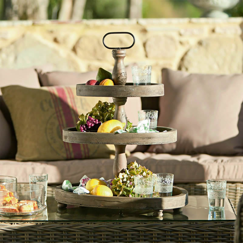 CLARA bedding nabízí Klasiku i Luxus na dosah - Nechte se inspirovat.• Etažér se středomořským charakterem.• Kromě kovové rukojeti je tento stojan na dorty vyroben výhradně z jedlového dřeva a má pěkný starožitný povrch.• Praktické: Díky třem velkým platformám nabízí spoustu místa pro kořenky, dekorační předměty nebo zabalené potraviny (například v misce apod ..).• Náš tip: jednoduše přidejte doplňky, jako jsou čajové svíčky, mini rostlinky nebo dekorativní sovy či ptáčky pro jedinečné aranžmá.• Etažér vypadá velmi dobře jako vícepatrová dekorativní mísa.• Pokud chcete, můžete na ně také naaranžovat dekorativní věci nebo použít k uložení drobných předmětů, šperků. • Etažér se středomořským charakterem.• Velikosti: cca. 61/47.5/32 cm - Ø cca. 32 cm• Elegantní středomořský design.• Materiál: Jedlové dřevo - kov. • Barva: antická hnědá.• Používejte méně plastů!