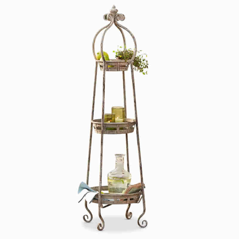 CLARA bedding nabízí Klasiku i Luxus na dosah - Nechte se inspirovat.• Klasický etažér je vybaven uměleckou finesou od hlavy až k patě.• Filigránová kovová konstrukce je velmi robustní a stabilní, tři patra nabízejí dostatek prostoru - nejen pro rostliny• Štíhlá silueta dodává designu obzvláště elegantní nádech a autentický starožitný povrch dodává nádech vintage elegance.• Opravdu skvělý stojan na rostliny v květináčích, ale také na svíčky a dekorativní předměty• Dřevěné desky lze snadno vyjmout pro plnění nebo čištění. Rám lze poté složit, aby se ušetřilo místo. • Přenosný Etažér - Příruční Stolek - Zahradní Etažér - Francouzský Styl.• Velikosti: cca.1167/Ø 39 cm- dolní patro: Ø ca. 33 cm- střední patro: Ø ca. 25 cm- horní patro: Ø ca. 20 cm• Elegantní Francouzský design.• Materiál: kov. • Barva: antiká hnědá.• Nevhodné pro skladování potravin.• Používejte méně plastů!