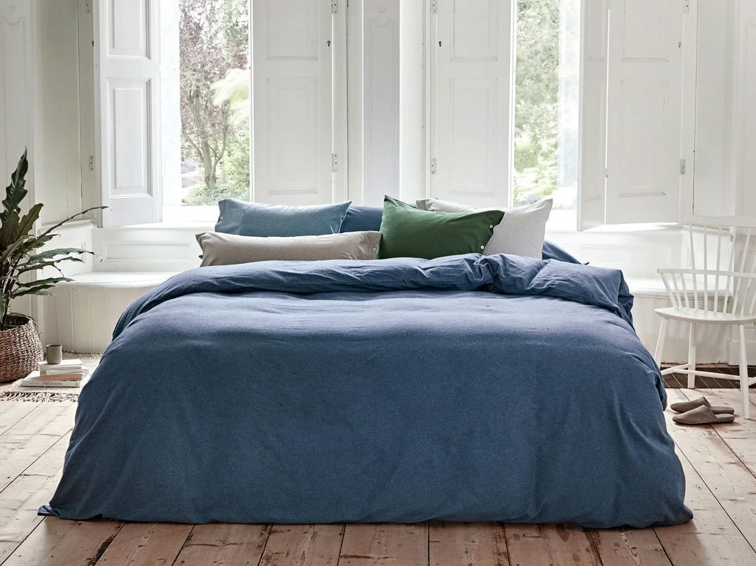 CLARA bedding nabízí Luxus na dosah—Bohatý výběr materiálů, barev a vzorů.• Jednobarevná hřejivá ložní souprava Denim Modrá - podmanivá elegance podzimních a zimních dnů.• Každý, kdo se rozhodne pro sametový flanel, chce maximální měkkost. Stoprocentní organická bavlna je tkaná a následně zdrsněná, až je mimořádně měkká, hebká a hřejivá. • Flanel je utkán z přízí v různých barvách, což mu dodává živý charakter - optika melánž a vnáší rustikální alpský šarm a útulnou atmosféru.• Sametový flanel jako materiál je obzvlášť měkký a hebký. Materiál má také velmi hřejivé vlastnosti a je ideální zejména pro chladné zimní noci. Když se zachumláte do tohoto povlečení, brzy se ponoříte do klidného spánku, zatím co venku sněží nebo se žení všichni čerti. • Nechte se rozmazlovat tímto úžasně mazlivým materiálem.• Povlečení je z Bavlněného flanelu - 100% bio bavlna - BIO (GOTS) - z kvalitních jemných česaných a mercerizovaných bavlněných přízí.• S příjemným omakem a hřejivým účinkem.• Chladné zimní a podzimní noci nejlépe strávíte v tomto měkkém sametovém flanelovém povlečení. Pokud jde o měkkost, sametový flanel zůstává nesporným lídrem. Organická bavlna prochází speciální úpravou, než si může skutečně říkat sametový flanel. Během tohoto řemeslného procesu jsou nejjemnější vlákna kartáčována, aby získala větší objem.• Nechte se rozmazlovat tímto úžasně mazlivým materiálem.• Materiál je prodyšný, flaušově měkký.• Běžná údržba. Praní do 40°C. Možno sušit v sušičce.• Ozdobné perleťové knoflíky.• Vhodná barva prostěradla - v nabídce pod produktem, nebo dle Vašeho výběru. • Vychutnejte si přednosti tohoto hřejivého materiálu.• Povlečení je možné doplnit o jednobarevné povláčky na malé mazlivé polštářky a rolky z jersey (100% bavlna).• Hřejivě hebký komfort spaní.
