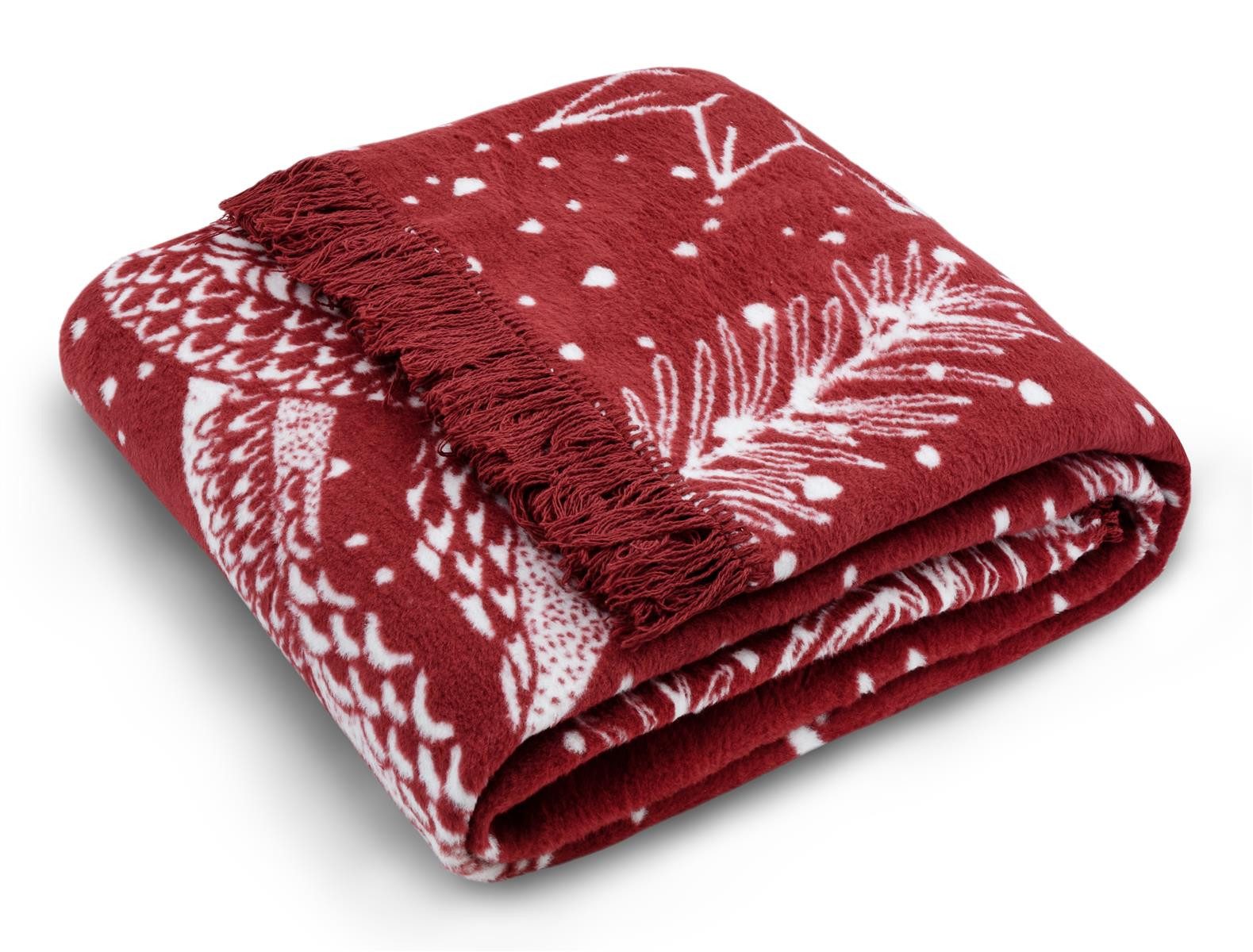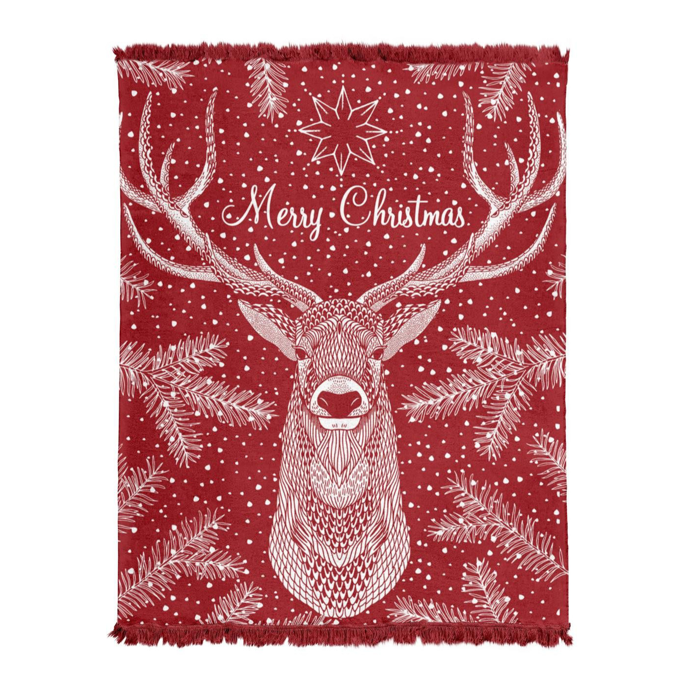 Vánoční Deka - Červený Jelen - Červená - Zimní Nálada