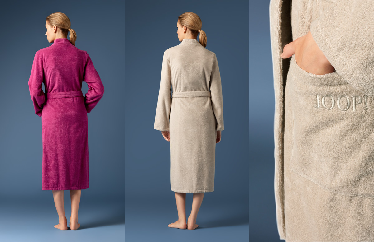 CLARA bedding nabízí Luxus nadosah—Bohatý výběr materiálů, barev a vzorů.• Luxusní Dámský Župan kimono - Klasik - JOOP! ve čtyřech barevných variacích. • Kultura Wellness - jemný, dobře savý, příjemný k pokožce, elegantní župan.• Župan má dvě kapsy a pásek na zavazování.• Župan JOOP! Uni kombinuje skvělou značku s exkluzivním vzhledem a vysokou kvalitu.• Materiál - 100% vysoce kvalitní Bavlna - froté (nová technologie tkaní - nové a načechrané froté).• Klasický župan kimonového střihu pro elegantní ženu.• Délka županu cca. 120 cm.• Běžná údržba, praní do 60°C.• Měkký a příjemný k pokožce.• Kouzlo měkkosti a hřejivé pohlazení.