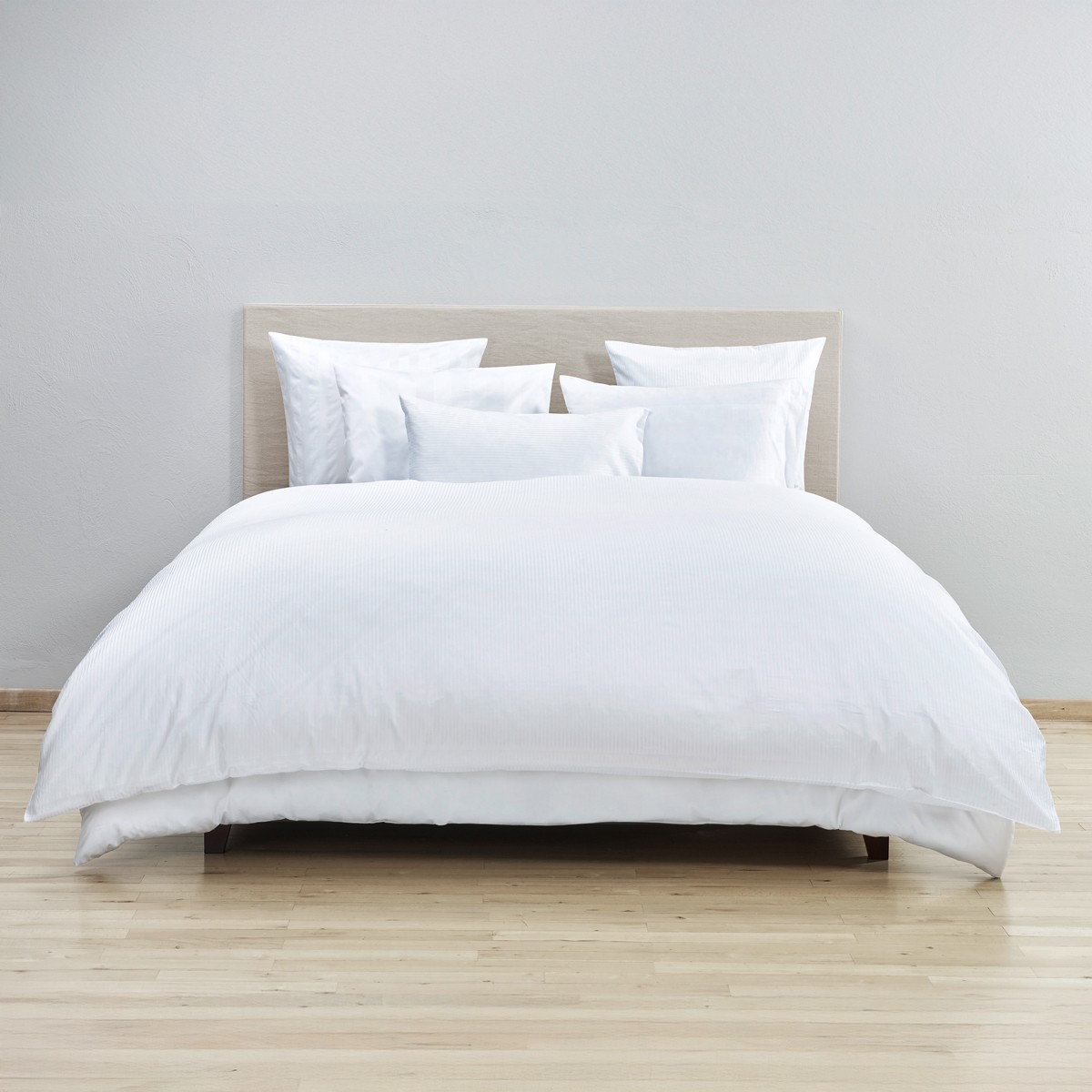 CLARA bedding nabízí Luxus na dosah—Bohatý výběr materiálů, barev a vzorů.• FINESTRIPE od Christian Fischbacher je jednou z nejoblíbenějších klasických látek s nejlehčí gramáží pouhých 90 g/m2. Pro výrobu této látky se používá pouze extra dlouhá bavlna. • Mimořádně dlouhá a jemná vlákna mají prvotřídní zpracovatelské vlastnosti. • Elegantní jemné pruhy na FINESTRIPE jsou tkané saténovým vazbou, díky čemuž jsou matné pruhy viditelné na lesklém pozadí tkaném saténovou vazbou. • Kombinace jemné příze, speciální vazby a sofistikované povrchové úpravy dodává této lehké látce extravagantní vzhled.• Luxusní ložní povlečení - Swiss Made. • Tato povlečení patří k nejlepším na světě. • Vysoce kvalitní jemný švýcarský Mako Satén - 100% bavlna, 90 g/m2. Jedná se o bavlněný satén, který je mercerisován, což zvyšuje jeho lesk a u kterého je zvýšena odolnost proti opotřebování. Tato úprava zaručuje dlouhou životnost výrobku. • Materiál je velmi jemný, lehký a příjemný k pokožce. • Běžná údržba.• Na výběr různé varianty velikostí přikrývek i polštářů.• Jedinečný a nezaměnitelný vzhled tohoto ložního povlečení vnese do Vaší ložnice eleganci a styl.• Zakázková výroba na objednávku.• Jedinečný komfort pro Váš spánek.