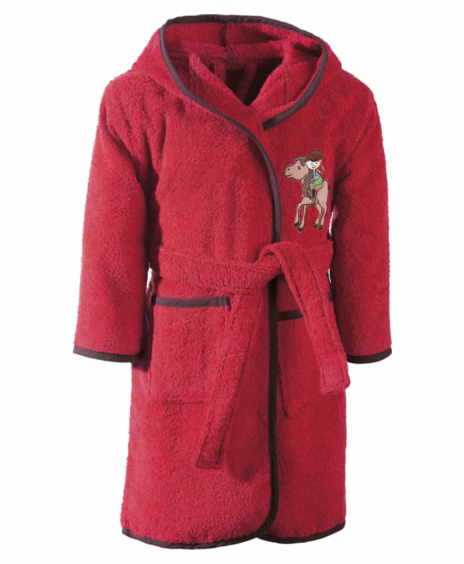 • Dětský a Baby Župánek - s aplikací koníka v červené barvě.
