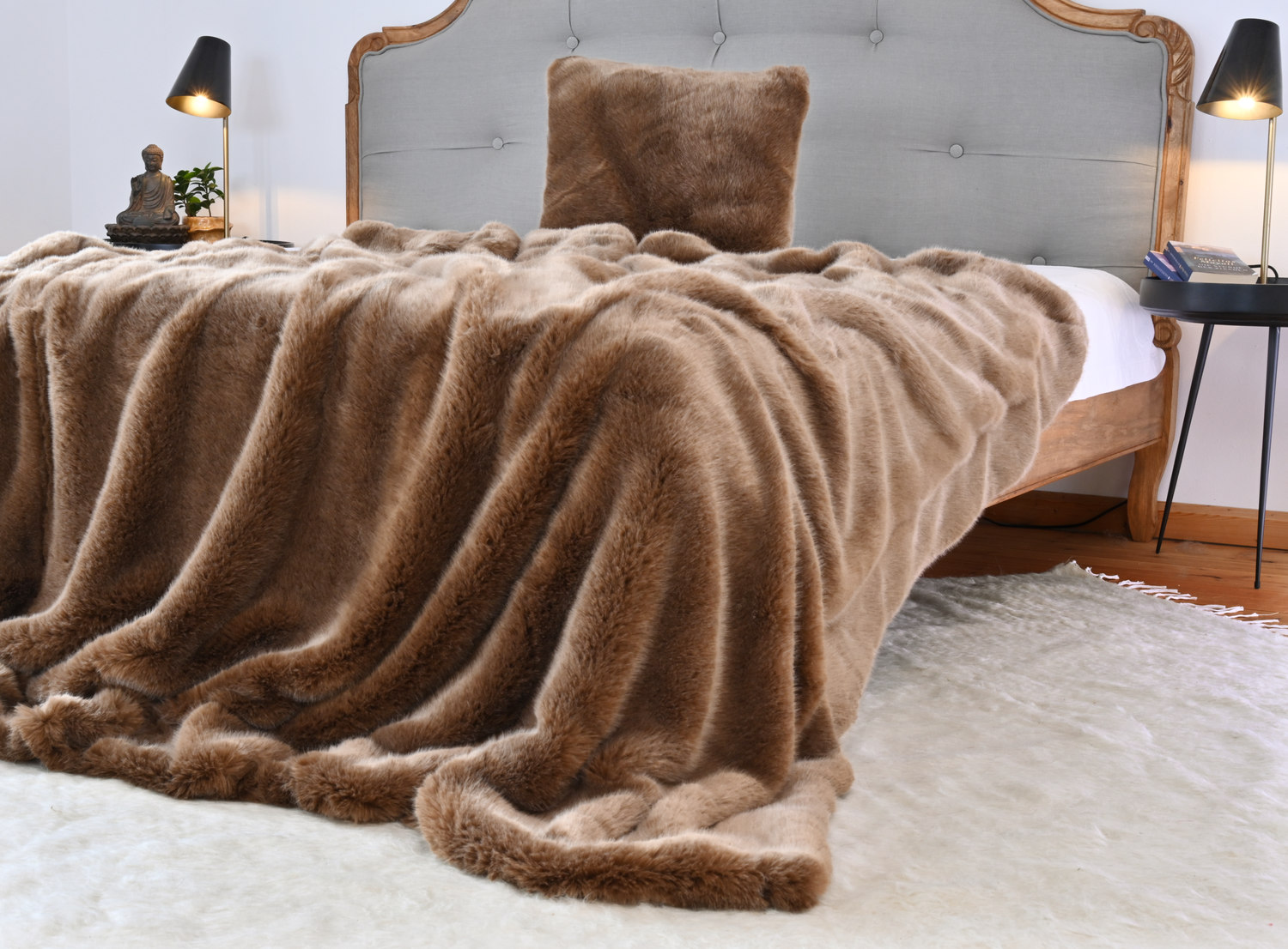 Deky z imitace kožešiny nabízejí luxusní a útulný doplněk k vašemu domácímu textilu a poskytují plyšový, opulentní pocit z pravé kožešiny s výhodami materiálů šetrných ke zvířatům. Umělá kožešina je vytvořena tak, aby kopírovala přirozený vzhled zvířecí srsti, s různou délkou a hustotou, aby vytvořila realistický vzhled, stejně tak, aby napodobovaly měkkost a teplo pravé kožešiny a zároveň zajistily udržitelnější a etičtější volbu. . Začleněním přikrývek z imitace kožešiny do vašeho domova vytvoříte elegantní a příjemné prostředí, ideální pro relaxaci a odpočinek.