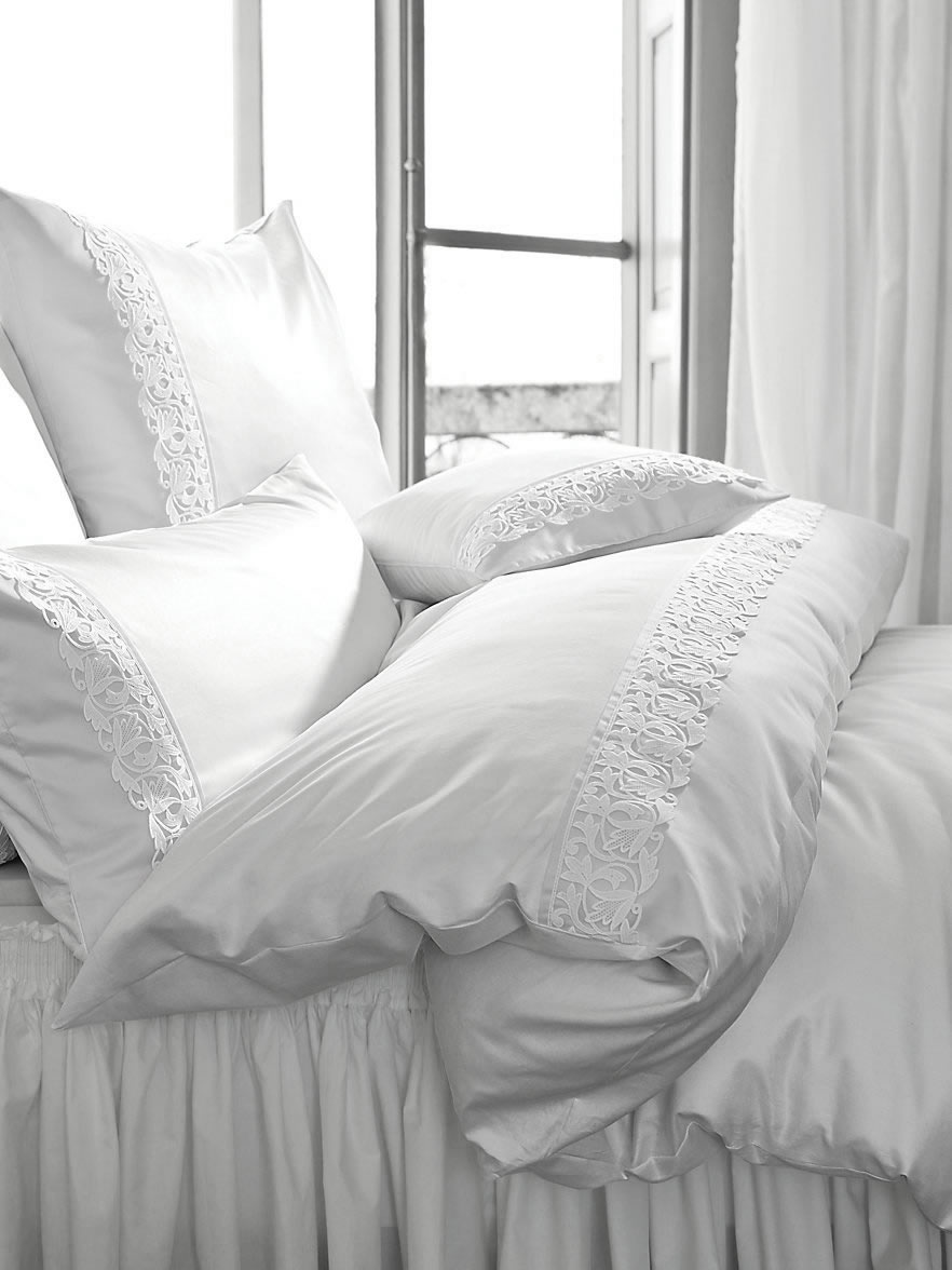 Luxusní povlečení s elegantní krajkou. Umění užívat si spánek všemi smysly. Prémiové povlečení elegantně zdobené krajkou. Bavlněný satén je příjemně lehký a připomíná hedvábí. Jeho charakteristickými znaky jsou měkký spád a skvostný trvalý mírný lesk. Vyznačuje se použitím dlouhých vysoce kvalitních bavlněných vláken a zaručuje trvanlivost. Krajka dodá povlečení romantický dotek a můžete snít jako byste spali na zámku.