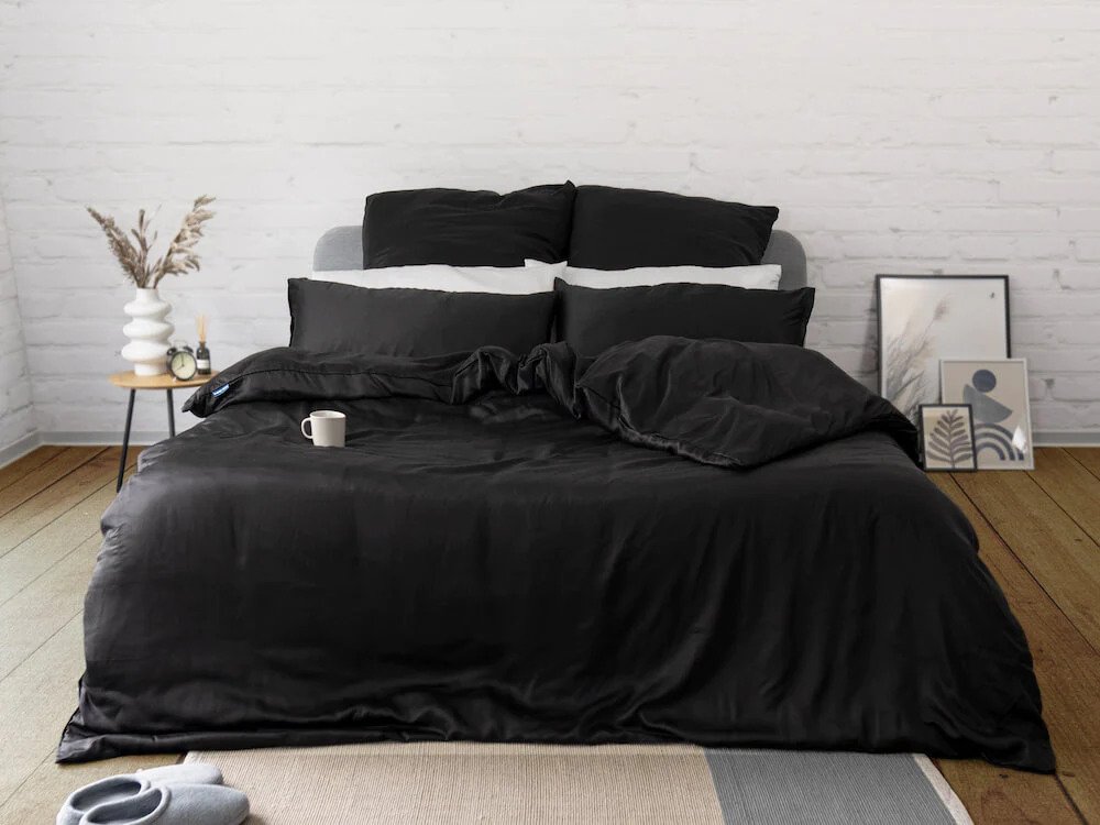 Černá barva je považována za nadčasovou, elegantní a všestrannou, což z ní dělá oblíbenou barvu ložních souprav. Černé povlečení může dodat nádech elegance a sofistikovanosti každé ložnici. Černá barva vypadá luxusně a stylově, extravagantně a draho. Na rozdíl od všeobecného mínění nenarušuje usínání, ale podporuje relaxaci, protože je spojena s noční tmou. Černé se nemusíte bát. Je to barva noci, naprosté relaxace, ochrany a tajemství.