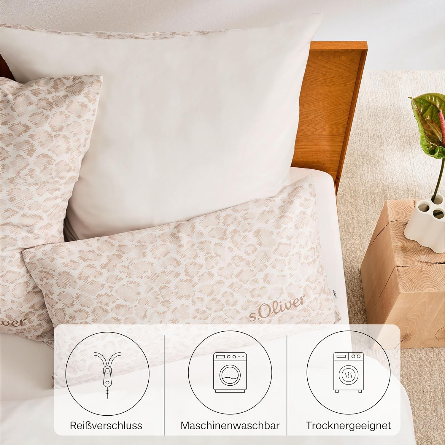 Povlečení - s.Oliver - Leo Béžová - Mako Bavlněný Satén - Modern Retro Style