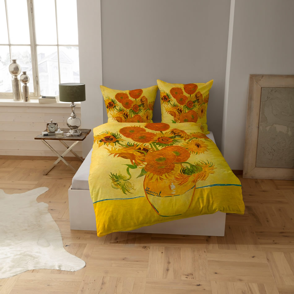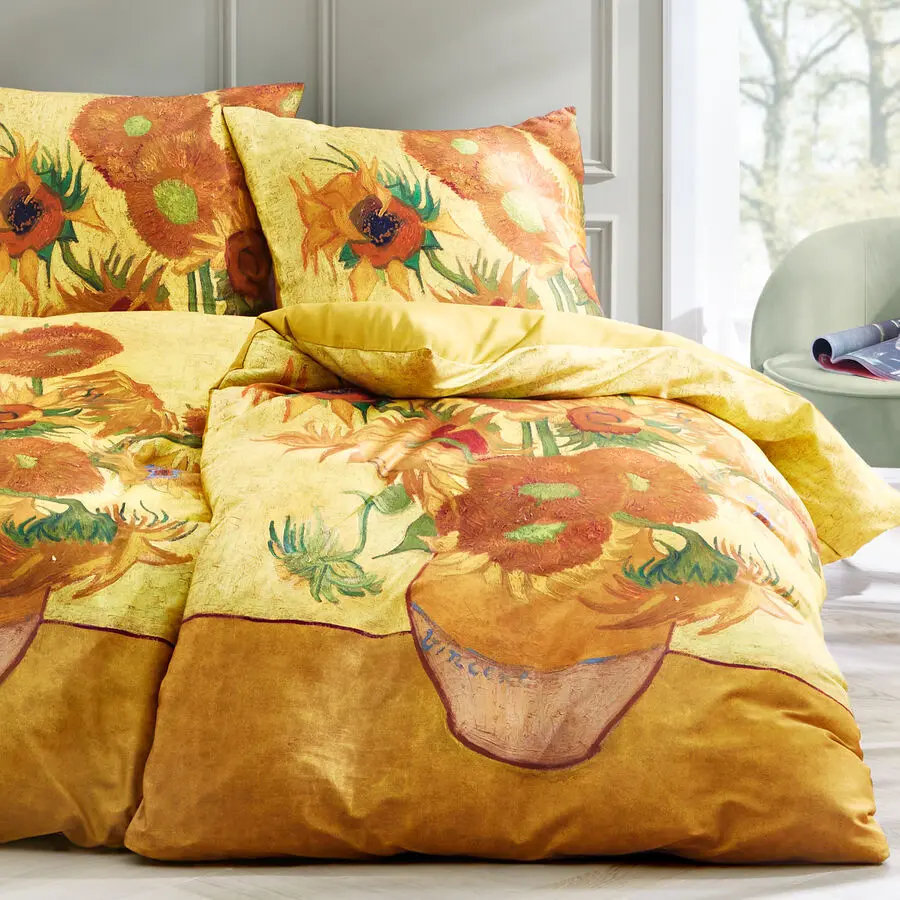 CLARA bedding nabízí Luxus na dosah—Bohatý výběr materiálů, barev a vzorů.• Stylová ložní souprava - Slunečnice - z bavlněného saténu v trendu "Elegance Chic". • Známá malba od Vincent Van Gog realizovaná jako povlečení.• Materiál: 100% bavlna - v úpravě Mako-Satén.• Zažijte měkkou kvalitu této ložní soupravy. • Snadná údržba - praní do 60°C. • Vysoce kvalitní digitální tisk.• Ložní souprava má zipový uzávěr.• Vhodná barva prostěradla - v nabídce pod produktem, nebo dle Vašeho výběru. • Povlečení je možné doplnit o jednobarevné povláčky na malé mazlivé polštářky a rolky z jersey (100% bavlna).• Pro Váš příjemný spánek.• Styl a Elegance pro Vaši ložnici.