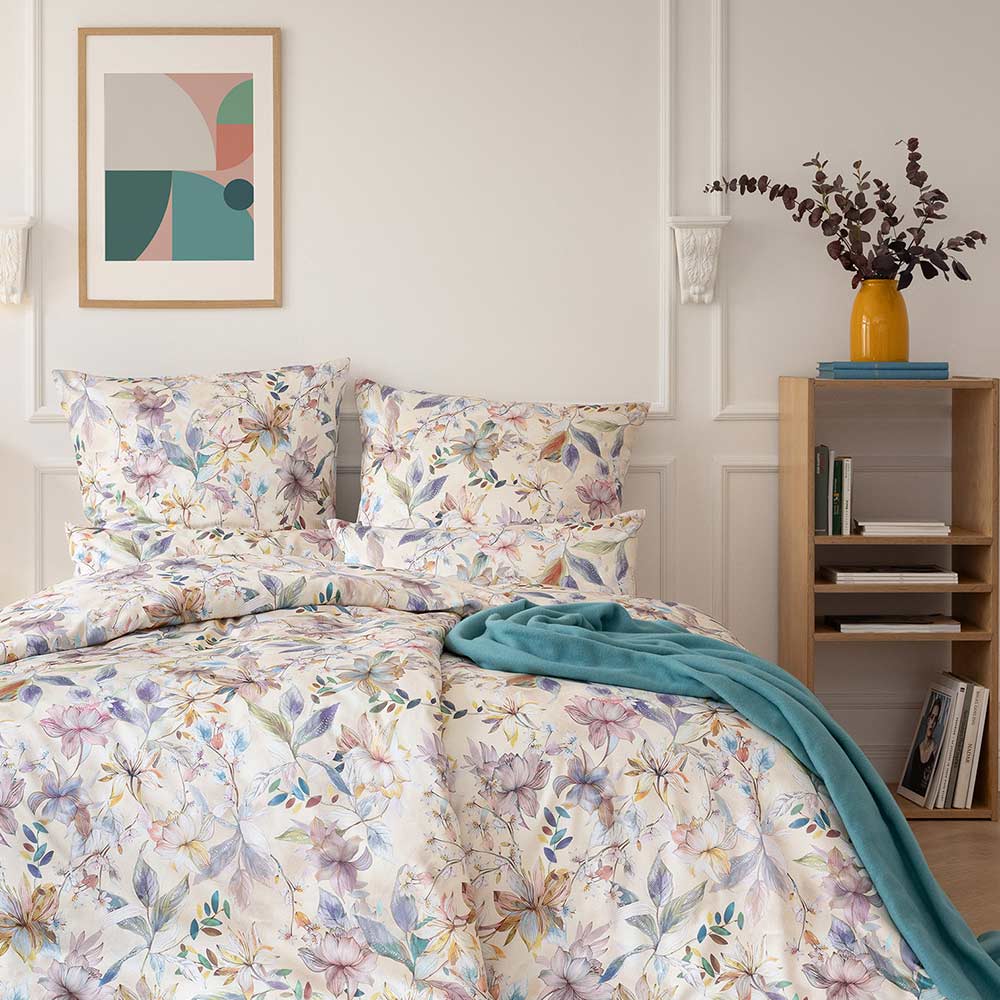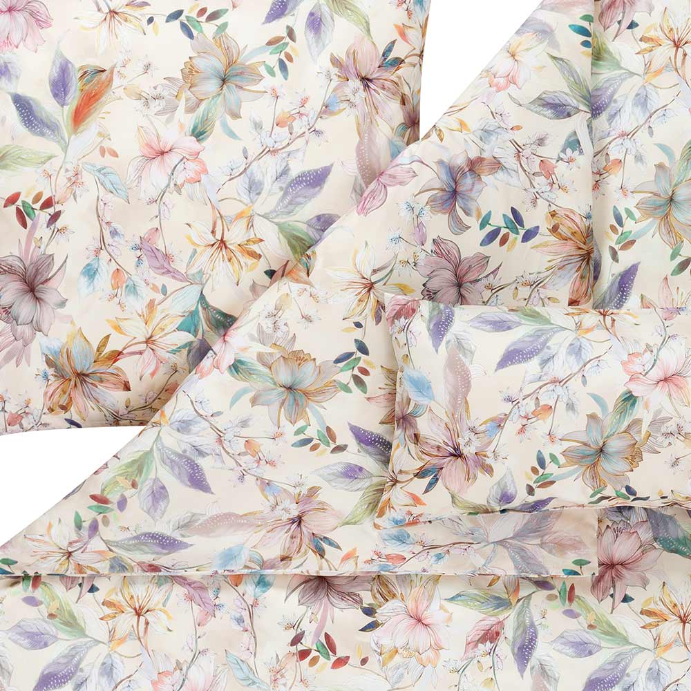 CLARA bedding nabízí Luxus na dosah—Bohatý výběr materiálů, barev a vzorů.• Vzor povlečení tvoří moře květů v odstínech fialové, růžové a zelené na světlém pozadí. • Jemné barevné přechody a delikátní lístky působí téměř jako akvarelová malba a vnášejí do interiérů nádech jara.• Díky měkké a příjemně lehké látce vyrobené z nejjemnější bavlny Mako a nádhernému trendy vzhledu bude povlečení ozdobou vaší ložnice.• Povlečení je z materiálu Mako-Satén - 100% Mako egyptská bavlněná dlouhovlákenná příze, super česaná a mercerizovaná.• Velmi příjemné na dotek.• Kvalitní provedení.• Toto ložní povlečení je opatřeno zipovým uzávěrem s plochým jezdcem. • Praní do 60°C. Možno sušit v sušičce.• Vhodnou barvu prostěradla Vám nabízíme dole pod produktem v kategorii příbuzných produktů, nebo dle Vašeho výběru.• Vychutnejte si přednosti tohoto úžasného materiálu.• Mimořádná elegance stylového dezénu v harmonických sladěných barvách této ložní soupravy promění Vaší ložnici v jedinečnou.• Povlečení je možné doplnit o jednobarevné povláčky na malé mazlivé polštářky a rolky z jersey (100% bavlna).• Dokonalý komfort pro příjemný spánek.