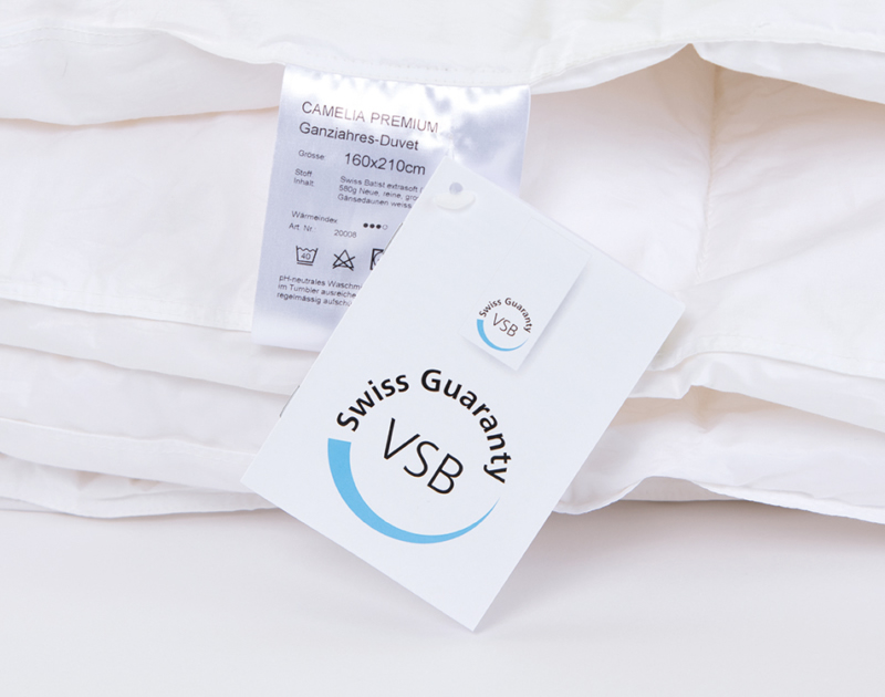 • Všechny výrobky z prachového peří a peří byly oceněny exkluzivní pečetí VSB a jsou vyráběny ve Švýcarsku nebo Lichtenštejnsku.