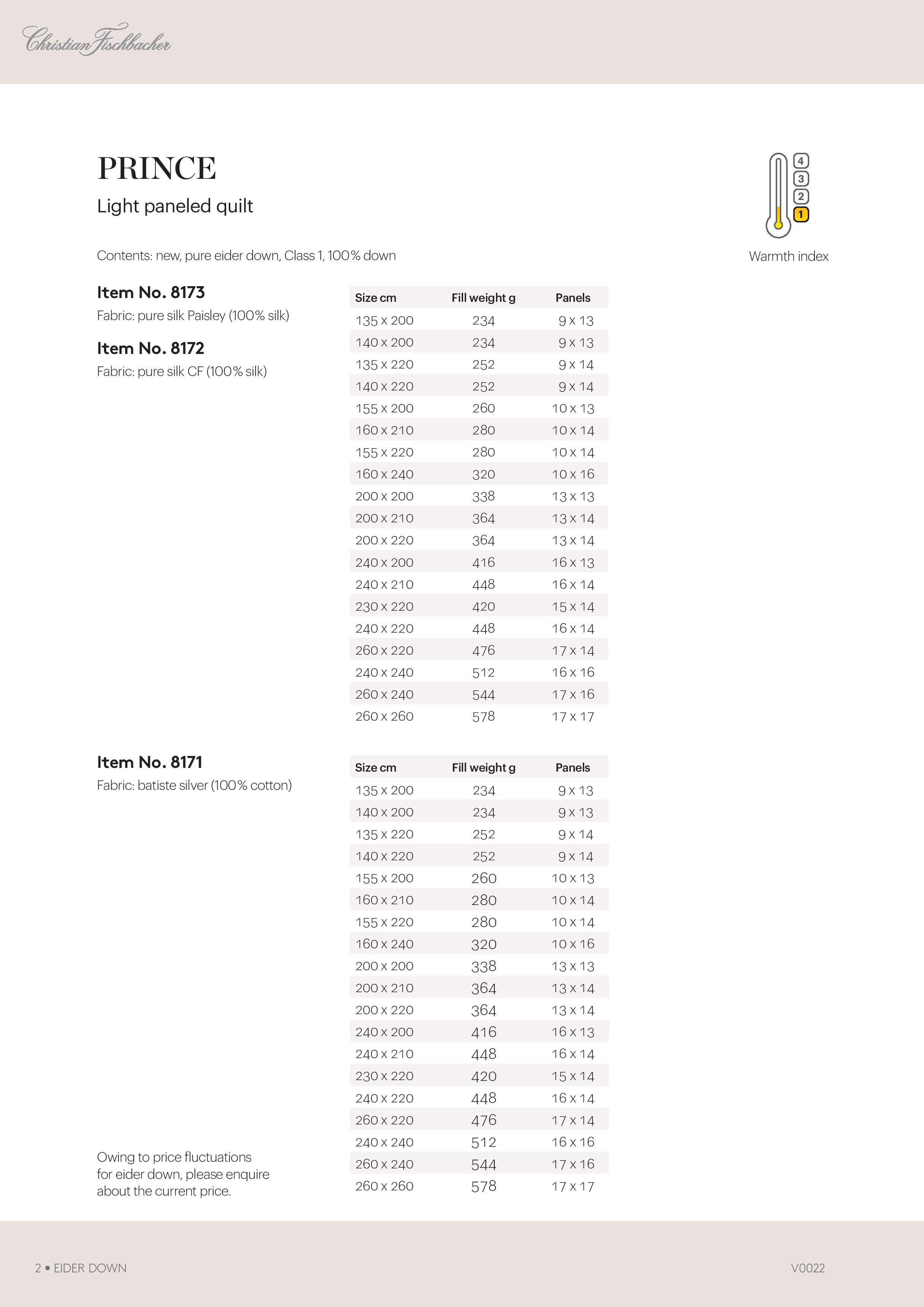 • Luxusní Přikrývka - Queen - Kajčí Peří je vhodná pro letní roční období.• Potah přikrývek je 100% pravé hedvábí paisley.• Náplň: 100% prachové kajčí peří. Původ: Z Islandu od Kajky mořské. Kajčí peří je exkluzivní raritou, je ručně sbíráno z opuštěných hnízd Kajky mořské a je zpracovávano dle přísných kriterií. Kajčí peří je "Královnou" mezi peřím.• Přikrývka je velmi jemná, lehká, mazlivá a příjemně teplá.• Luxusní prostředí pro spánek zajišťuje optimální rozložení teploty pro celé tělo, je vysoce prodyšná. • V hmotnosti a objemu plnění je nepřekonatelná.• Kazetové prošití - dobře přizpůsobivé/ohebné.• Barva: champagne.• Teplotní zařazení: celoroční.• Teplotní index - 1.teplotní bod.• 100% přírodní produkt.• Kvalitní provedení. • Vyrobeno ve Švýcarsku.• Pro zdravý a klidný spánek v průběhu celého roku. Vhodná i pro celoroční použití a pro lidi s nízkou potřebou průměrného tepla. Dává jedinečný pocit luxusu.• Vysoký komfort a optimální klima pro spánek.