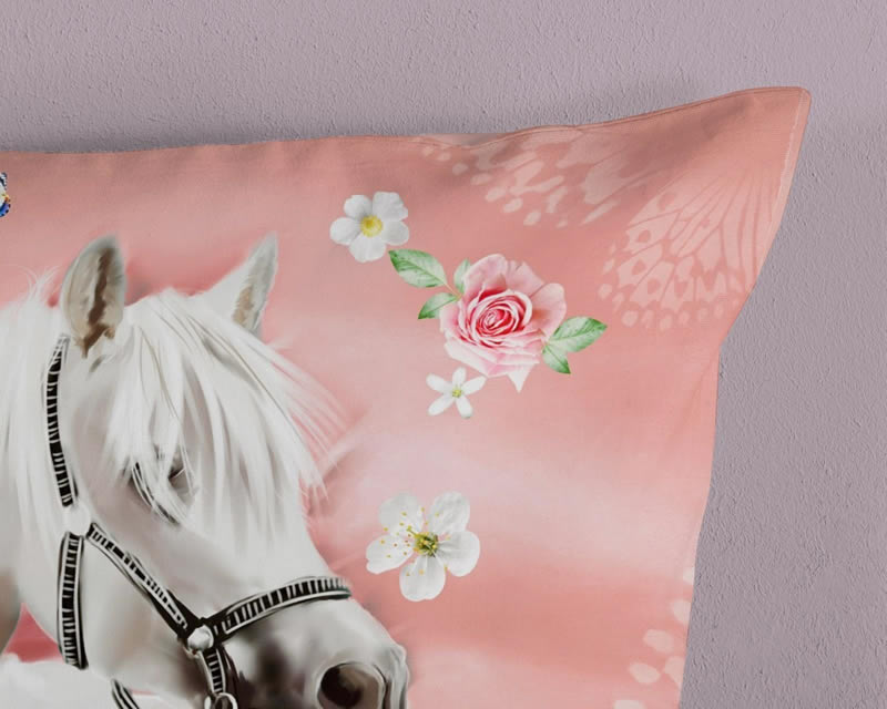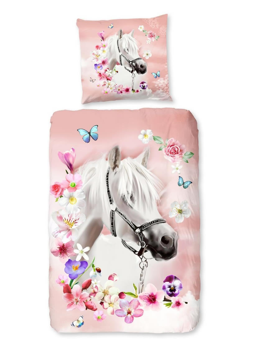 • Povlečení v hravém dezénu bílého koníka s květy.