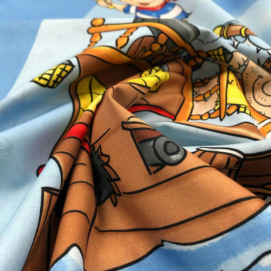 CLARA bedding nabízí Luxus na dosah—Bohatý výběr materiálů, barev a vzorů.• Dětská ložní souprava - Piráti - Pirátský Poklad. • Příjemná dobrodružství s piráty a jejich pokladem při snění.• Stylový, vysoce kvalitní digitální potisk.• Povlak polštáře ve dvojí optice.• Kvalitní tisk.• Materiál: 100% bavlna - Renforcé.• Příjemný, prodyšný materiál. • Snadná údržba. Praní do 60°C.• Vhodná barva prostěradla Bílá, nebo dle výběru.• Příjemný spánek.