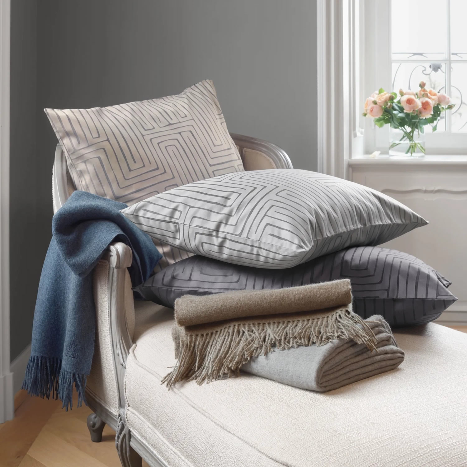 • Ušlechtilá žakárová tkanina s jemnými barevnými odstíny. Grafický, labyrintový vzor, organické linie.