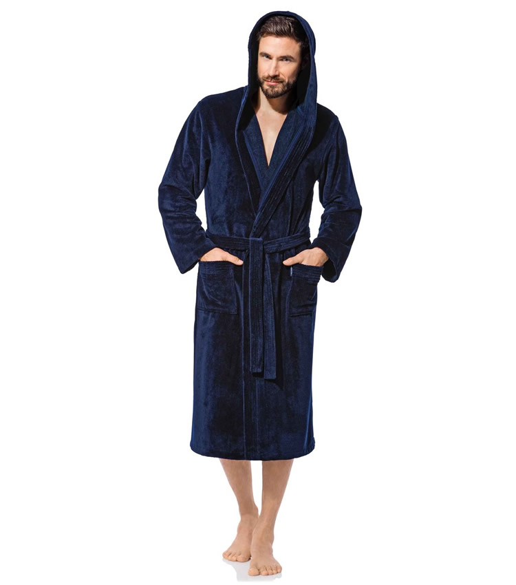 CLARA bedding nabízí Luxus na dosah—Bohatý výběr materiálů, barev a vzorů.• Pánský Wellness Župan s Kapucí - Noční Modř Duo - Multi - Bavlna & Bambus.• Elegantní wellness župan s kapucí v barvě námořní modři - kombinuje tmavší a světlejší odstín modré barvy (vnější strana je tmavší a vnitřní světlejší).• Lehký, měkký s výbornou savostí.• Novinka multivlákna: 30% bavlna, 30% viskóza (z bambusových vláken), 40% mikrovlákno (polyester).• Vnější strana ze sametového mikrovlákna a vnitřní strana z výborně savé kombinace bavlna/bambusová viskóza.• Skvělý materiál pro perfektní župany, sarongy a froté ručníky a osušky - má výbornou savost a rychle schne. • Barvy zůstávají i po mnoha vypráních zářivé.• Pánský Wellness Župan má kapuci, dvě kapsy jedna s vnitřní kapsičkou na zip na drobné, na klíče apod. a pásek na zavazování.• Délka županu cca. 120cm.• Běžná údržba. Praní do 60°C.• Skvělý na doma.• Zpříjemní pobyt ve wellness centru, při návštěvě saunové světa nebo jen tak k bazénu či k vodě, moři apod.• Měkký a příjemný k pokožce.• Kouzlo měkkosti a hřejivé pohlazení.