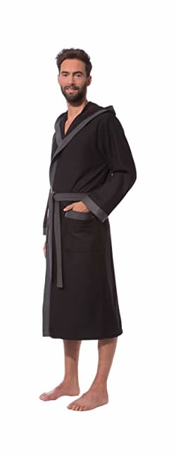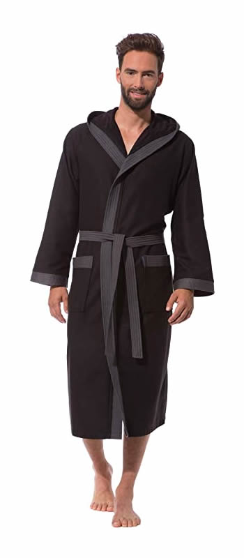 CLARA bedding nabízí Luxus nadosah—Bohatý výběr materiálů, barev a vzorů.• Pánský Wellness Župan s Kapucí Nico - Černá - Lehký - Bavlna & Bambus.• Elegantní wellness župan s kapucí v barvě antracitové.• Lehký, měkký s výbornou savostí.• Pánský Wellness Župan má kapuci, dvě kapsy jedna s vnitřní kapsičkou na zip a pásek na zavazování.• Novinka multivlákna: 20% bavlna, 45% viskóza (z bambusových vláken), 35% mikrovlákno (polyester).• Vnější strana ze sametového mikrovlákna a vnitřní strana z výborně savé kombinace bavlna/bambusová viskóza.• Délka županu cca. 120cm, dlouhý.• Běžná údržba. Praní do 40°C.• Skvělý na doma.• Zpříjemní pobyt ve wellness centru, při návštěvě saunového světa nebo jen tak k bazénu či k vodě, moři apod.• Měkký a příjemný k pokožce.• Kouzlo měkkosti a hřejivé pohlazení.