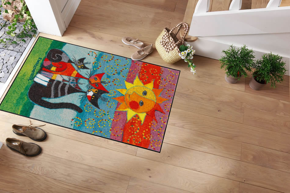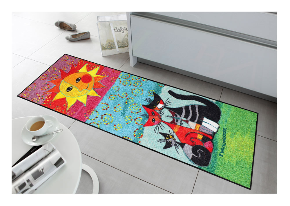 CLARA bedding nabízí Luxus na dosah—Bohatý výběr materiálů, barev a vzorů.• Velmi kvalitní rohož - kobereček pro domácí zátěžové prostory - dekorativní a praktický. • Šťastný motiv koček.• Rohož - kobereček zachycuje nečistoty a vlhkost velmi spolehlivě.• Nášlapná část je - 100% polyamid s proti-skluzovou latexovou vrstvou na spodní straně.• Možno použít i při podlahovém vytápění. • Praní do 40°C.• Možnost použití ve vnitřních i venkovních prostorech.• Využití - do kuchyně, chodby, haly, spíže, sklípku či u prahu na terasu nebo balkon, do chodby, ke vstupním dveřím apod.• Doplňky dotváří styl každé domácnosti.