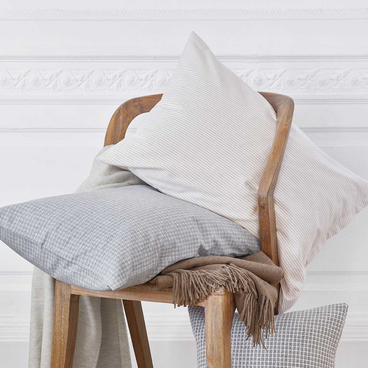 CLARA bedding nabízí Luxus na dosah—Bohatý výběr materiálů, barev a vzorů.• Jemně tkané svislé pruhy v podzimních tónech zdobí design povlečení GUSTAV. • Chladnější stříbrnošedé a teplé béžové tóny se snoubí s vlněnou bílou a spojí se a vytvoří jemnou hru barev. • Kombinace struktur jednotlivých barevných tkanin a grafických pruhů má za následek klasicky elegantní design se vzhledem Vichy.• Flanel je obzvláště příjemná bavlněná tkanina, která je stejně jako denim tkaná v keprové vazbě. • Je určen pro chladné zimní měsíce, protože povrch zdrsněný na jedné straně vytváří vzduchové polštáře, které vás izolují od chladu a udržují vás v teple. • Flanel je proto ideální pro ty, kteří rychle prochladnou, kteří chtějí nadýchaný měkký pocit a hodně tepla.• Teplé a nadýchané.• Obzvláště měkké.• Prodyšný.• Snadná údržba a bez žehličky.• Dokáže velmi dobře absorbovat vlhkost.• Materiál 100% Bavlna.• Jedinečný a nezaměnitelný vzhled tohoto ložního povlečení vnese do Vaší ložnice eleganci a styl.