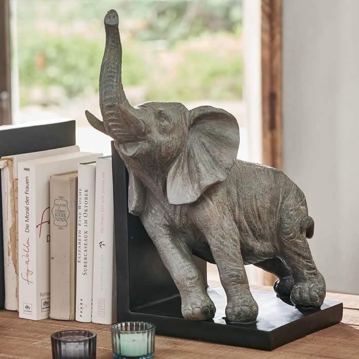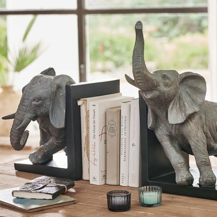 CLARA home nabízí Klasiku i Luxus na dosah - Nechte se inspirovat.• Ahoj, milovníci knih! Už vás nebaví, jak se vám knihy převracejí a dělají nepořádek na policích? Pak jsou pro vás vhodné zarážky na knihy, které knihy elegantně podepřou.• Jakkoli je elektronická čtečka praktická, zůstává neosobní. Protože, abychom byli upřímní, co může být hezčího než listovat knihou stránku po stránce a nosit ji všude s sebou, dokud neuvidíte, kolikrát byla přečtena a jak moc milována? • Luxusní duo, v němž umělecky a velmi přirozeně navržení sloni tvoří dvě krásné zarážky do knihovny. • Nejenže bezpečně udrží vaše cenné knihy na místě, ale také vytvářejí vysoce dekorativní akcent. • S touto atraktivní dvojicí se do vašeho domova dostane atmosféra rozlehlých stepí pod africkým sluncem.• Vychutnejte si nádech safari romantiky a nechte se zasnít do vzdálených a dobrodružných krajů díky tomuto stylovému pohledu. Design s mimořádně okouzlujícím charakterem.• Termín "knižní zarážka" označuje zařízení, které slouží k přidržování knih na poličce, aby nemohly spadnout. Podobně jako v případě dominového efektu může při převrácení knihy dojít k převrácení nebo dokonce pádu sousedních knih a dalších předmětů na polici. Knižní zarážky udrží knihy na místě a zabrání jejich převrácení. • Velikosti: 27/23/32cm a 41/23/32cm.• Váha: cca. 6,93kg. • 2 dílná sada. • Barva: atická šeď.• Materiál: Polyresin• Elegantní design.