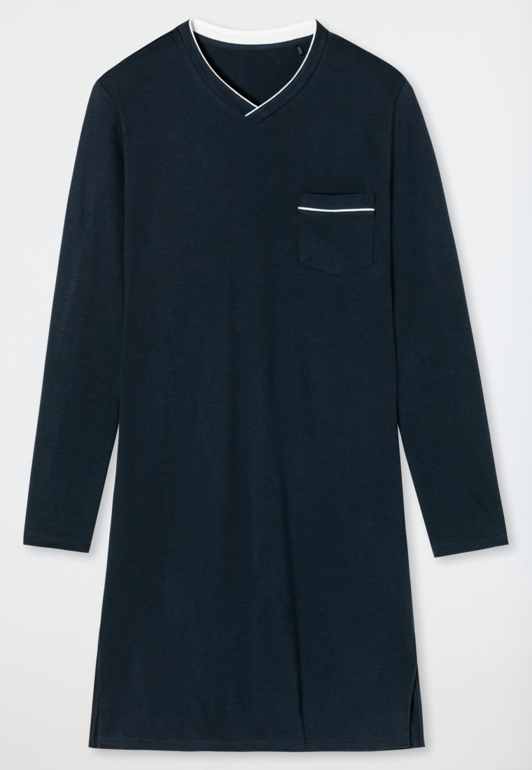 CLARA bedding nabízí Luxus na dosah—Bohatý výběr materiálů, barev a vzorů.• Příjemná pánská noční košile Vincent. Mužné, pohodlné, nekomplikované - tato pánská tmavě modrá košile na spaní splní všechna přání.• S dlouhým rukávem, náprsní kapsičkou.• Výstřih do V.• Délka cca 95cm.• Materiál - 100% bavlna v úpravě Interlock jersey. (vysoce kvalitní úplet ze 100% bavlny)• Měkký, jemný, příjemný materiál.• Elegantní styl.• Běžná údržba - možnost praní do 60°C.• Příjemný spánek.