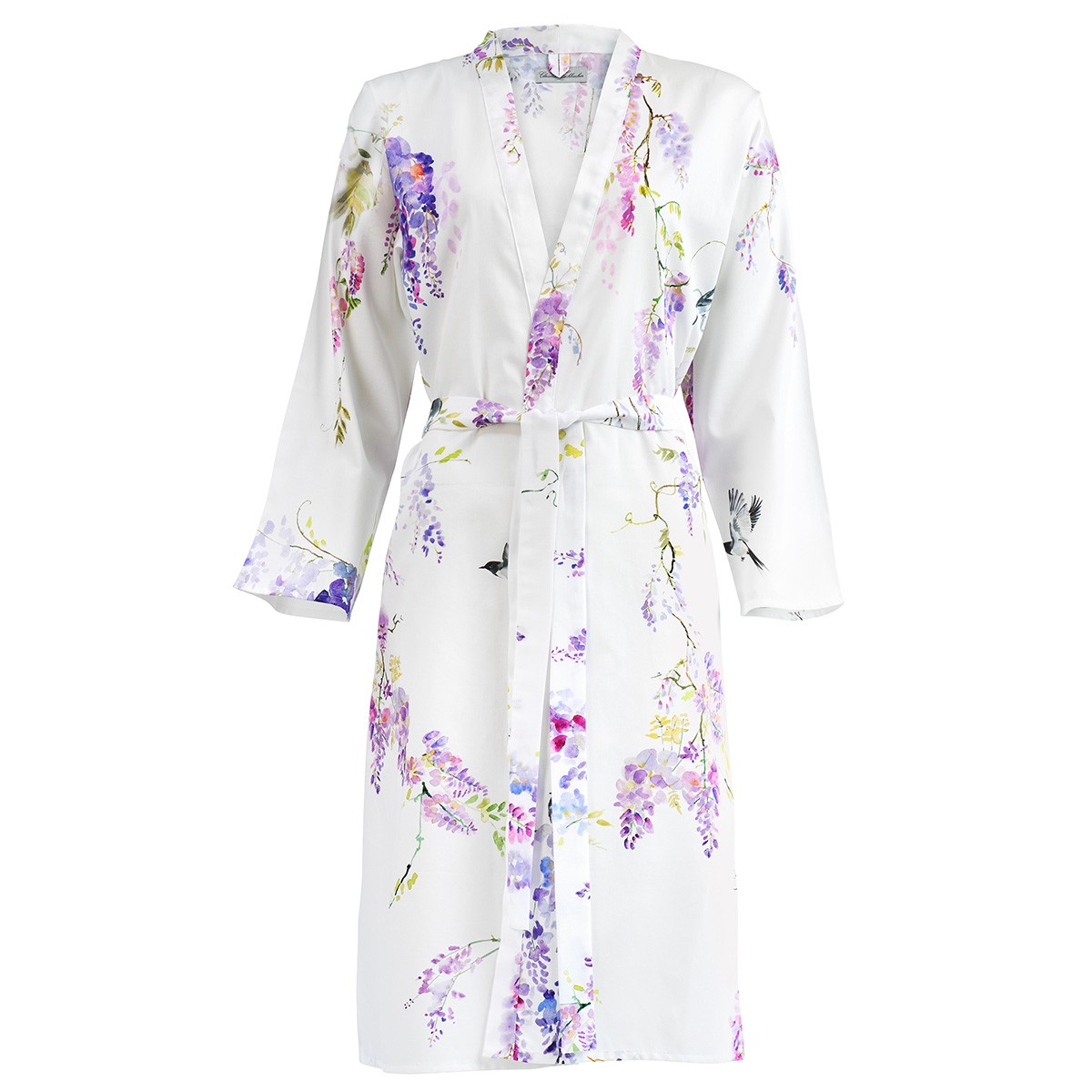 CLARA bedding nabízí Luxus na dosah—Bohatý výběr materiálů, barev a vzorů.• Kimono je tradiční japonský oděv, který se vyznačuje decentní elegancí a jedinečným střihem. • Je vyrobeno z vysoce kvalitní extra dlouhé bavlny (100% satén), má ležérní, otevřený střih a široké, dlouhé rukávy. • Kimono se obvykle zavazuje kolem pasu širokým páskem, díky svému splývavému střihu jsou kimona vhodná pro různé tvary a velikosti postavy, takže jsou pohodlným a módním oděvem pro muže i ženy. • Tradiční estetika kimona ve spojení s moderními akcenty z něj činí nadčasovou klasiku v každém šatníku.- Satén, 100% bavlna- Příjemně lehké na kůži- Přizpůsobí se tvaru postavy• Od růžové po růžovou, fialovou a modrou, květy japonského modrého deště pokrývají kreaci PURPLE RAIN jako jemná mlha. • Mezi tím je slyšet cvrlikání mladých vlaštovek, které sedí na jemných větvičkách nebo se vznášejí vysoko ve vzduchu. • Motivy byly zručně akvarelově vybarveny ve studiu Christiana Fischbachera a s velkým důrazem na detail vytištěny na látku v naší tiskárně v Itálii. Vytištěny s velkým důrazem na detail.• Exkluzivní kvalita.• Vyrobeno ve Švýcarsku.• Běžná údržba. Praní do 60°C.• Báječně ladí s froté ručníky z kolekce Christian Fischbacher.• Mazlivé pohlazení každý den.