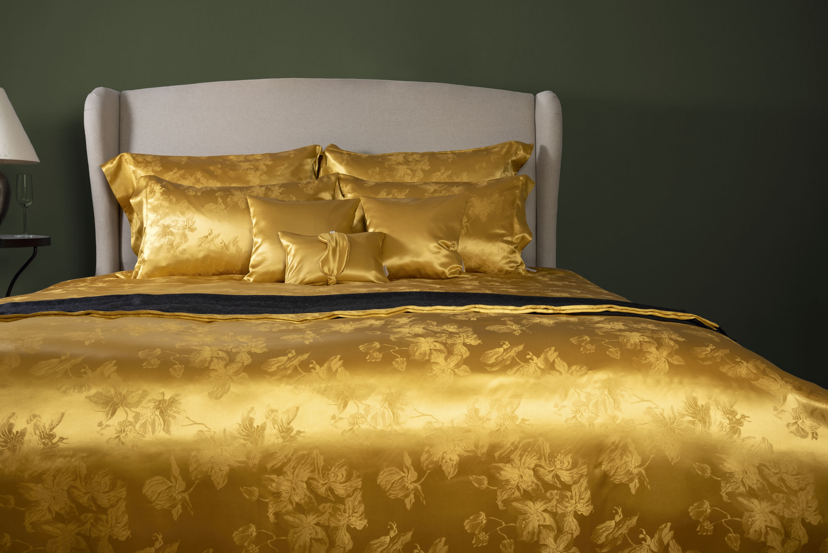 CLARA bedding nabízí Luxus na dosah—Bohatý výběr materiálů, barev a vzorů.• Hedvábné povlečení "Ada" je vyrobeno ze 100% kvalitního hedvábí. Sytý zlatý odstín dodává hedvábnému povlečení "Ada" čistou eleganci. Povlečení "Ada" je kusově barvený hedvábný žakár a zaujme především svým sytým zlatým odstínem. Jemně stínovaný květinový vzor povlečení "Ada" dotváří sen o exkluzivitě pro individualisty, kteří si uvědomují trendy. Hedvábné ložní prádlo "Ada" je zlatým snem.• Hřejivá barva, sytá a ušlechtilá - hedvábné povlečení "Ada" má měkkou tkaninu, která vám poskytne příjemný pocit na kůži.• Pravé hedvábí - gramáž přibližně 105 g/m², což odpovídá přibližně 28 momme.• Vyrobeno v Německu• Hedvábné ložní prádlo může absorbovat až deset procent své hmotnosti, aniž by bylo vlhké. Hedvábí je ideální pro léto i zimu, za horkých nocí poskytuje chladivou svěžest a při nízkých teplotách hřeje. 100% přírodní vlákna, měkká, pružná a velmi lehká. Hedvábné ložní prádlo z čistého morušového hedvábí je nejen ušlechtilé, smyslné a luxusní, ale také prospěšné pro vaše zdraví a pohodu.- Hedvábné ložní prádlo je vhodné zejména pro osoby trpící neurodermatitidou.- Vysoká absorpce vlhkosti a regulace teploty: ideální proti pocení.- Hypoalergenní, antistatické, antibakteriální, ideální pro osoby s astmatem, alergií na prach a dalšími kožními chorobami.- Extrémně jemný a uklidňující účinek na nervový systém.- Snižuje se výskyt roztřepených konečků a rozcuchaných vlasů. Méně mastné vlasy díky potlačení nadměrné tvorby kožního mazu.- Zabraňuje tvorbě vrásek a vrásčitých míst na obličeji.- Chrání a zklidňuje obličej a oční okolí během spánku• Pokyny pro péči: Hedvábné ložní prádlo perte odděleně, naruby, na jemný cyklus při 30°C stupních bez dalšího prádla. Vezměte prosím na vědomí, že hedvábí nebo hedvábné směsi nejsou vhodné do sušiček nebo mandlů. Při sušení venku by hedvábné ložní prádlo nemělo být vystaveno přímému slunečnímu záření. Lze žehlit mírně navlhčený při teplotě max. 110 °C. Nikdy hedvábné ložní prádlo nestříkejte parfémem nebo deodorantem a neperte ho v bělidle. Používejte pouze tekuté prací prostředky na hedvábí nebo vlnu. Tkaninu nevyždímejte. Hedvábné ložní prádlo vždy žehlete z rubové strany; nepoužívejte k jeho navlhčení vodu navíc.• Odpovídající prostěradlo HELIOS Gold Zlatá, nebo vzorované prostěradlo Ada Gold - Zlatá, k dostání samostatně.• Speciální rozměry ložního prádla jsou k dispozici na vyžádání.• Toto zboží je vyráběno na zakázku z metráže hedvábí na základě konkrétních požadavků kupujícího.• Na vyžádání je možno zapůjčit barevnici (vzorník hedvábí) pro lepší možnost výběru.