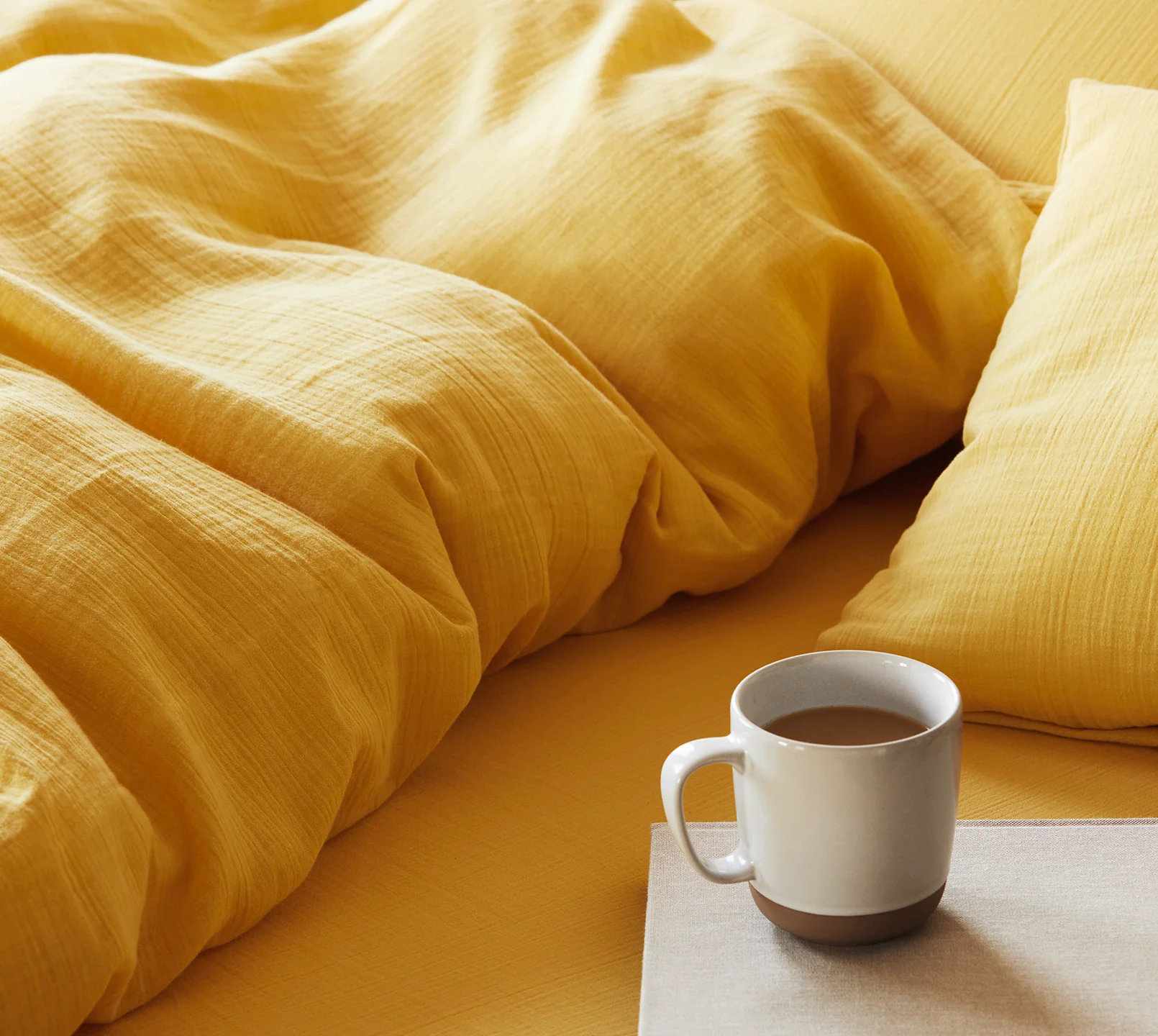 • Lehká struktura mušelínu dodává tomuto jednobarevnému ložnímu povlečení jemnou živost.