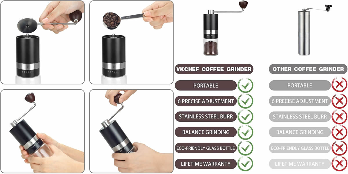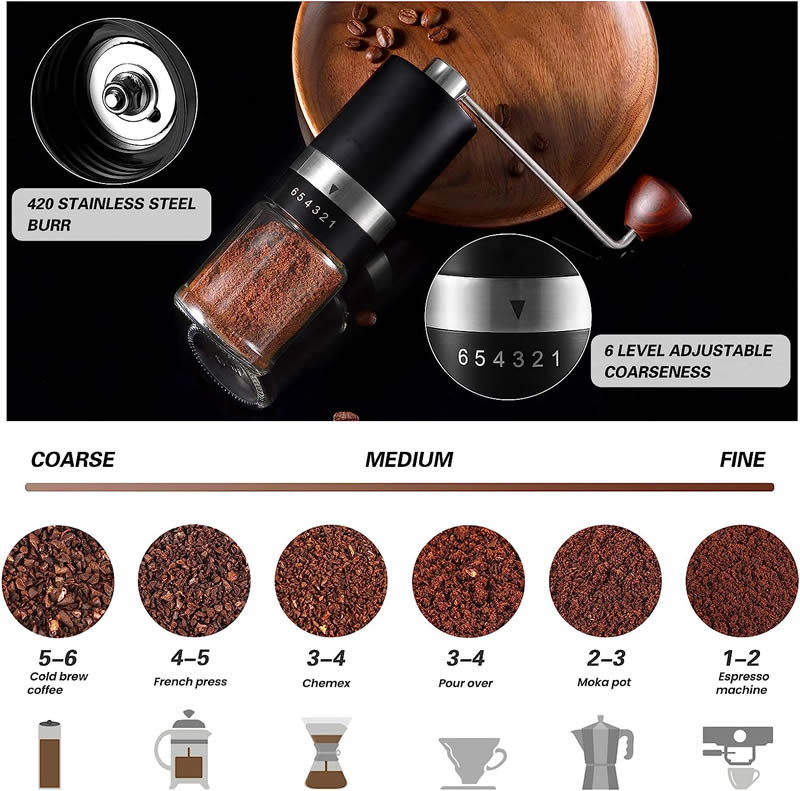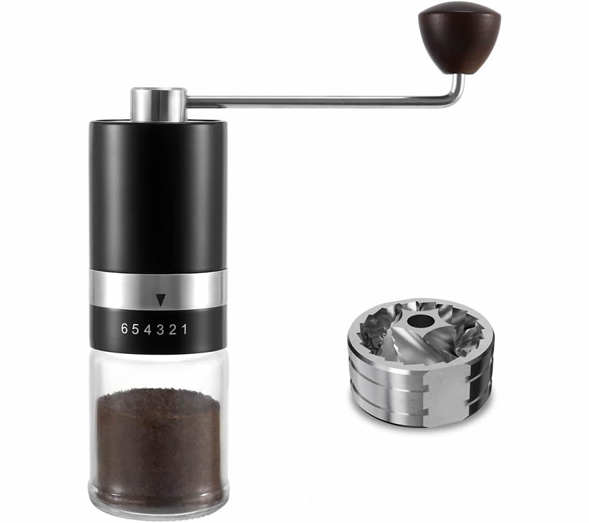 CLARA bedding nabízí Klasiku i Luxus na dosah - Nechte se inspirovat.• ÚČINNÉ A KONZISTENTNÍ MLETÍ KÁVY S MLÝNKEM Z NEREZOVÉ OCELI - Černý ruční mlýnek na kávu se skládá z kónického mlýnku z nerezové oceli CNC, který je odolnější a účinnější. Jedno namletí trvá 45 SEKUND nebo méně. Proces mletí je stabilnější a namletá káva má stejnou velikost. Objem skleněné nádobky je přibližně 48 gramů (0,1 lb) kávového prášku.• ŠEST ÚROVNÍ NASTAVENÍ MLETÉ KÁVY - Tento ruční mlýnek na kávu má 6 přesných úrovní nastavení. Můžete si nastavit konkrétní úroveň mletí od hrubého po jemné, například ESPRESSO, POUR OVER, CHEMEX, COLD BREW, DRIP COFFEE. • Zde jsou některé doporučené stupně: 1-2 stupně pro kávovary na espresso, 2-3 stupně pro moka konvičky, 3-4 stupně pro Pour Over a Chemex, 4-5 stupňů pro French Press, 5-6 stupňů pro Cold Brew Coffee. • PŘENOSNÝ MLÝNEK NA KÁVOVÁ ZRNA PRO SNADNÉ CESTOVÁNÍ - Lehký mlýnek na zrnkovou kávu se snadno přenáší. Je vysoký 19 cm, široký 5,18 cm a váží 450 gramů. Ruční kliku mlýnku na kávu můžete snadno odejmout a přidat kávová zrna do zásobníku. Mlýnek na kávu si můžete uložit do tašky na cesty, kempování, turistiku, výlety do přírody nebo do kanceláře apod.• SNADNÉ ČIŠTĚNÍ - mlýnek na kávu můžete vyčistit nebo opláchnout kartáčkem a poté nechat rychle uschnout. (Čištění ručního mlýnku na kávu K čištění ručního mlýnku na kávu denně používejte kartáč. Protože kávový tuk je dobrý pro jádro z nerezové oceli. Pro občasné čištění mlýnku na kávu: Nejprve nastavte stupeň 6, opláchněte vnitřek nálevky vodou a poté použijte hadřík nebo například fén, aby rychle uschnul.)• Ruční Mlýnek na Kávu• Stylový design.• Rozměry produktu: 5,59 x 5,59 x 16,51 cm; 452 gramů.• Kapacita: 145 Cubic Centimeters• Malý objem, kapesní velikost, snadné uložení, když jde ven.• Upozorňujeme, že káva není součástí balení.• Snadná údržba. Hezký dárek.