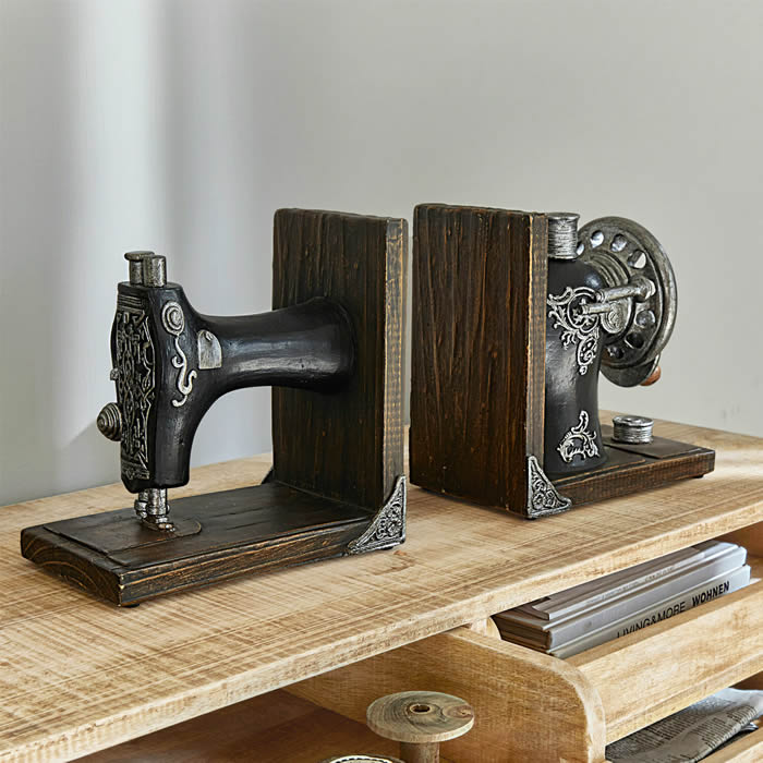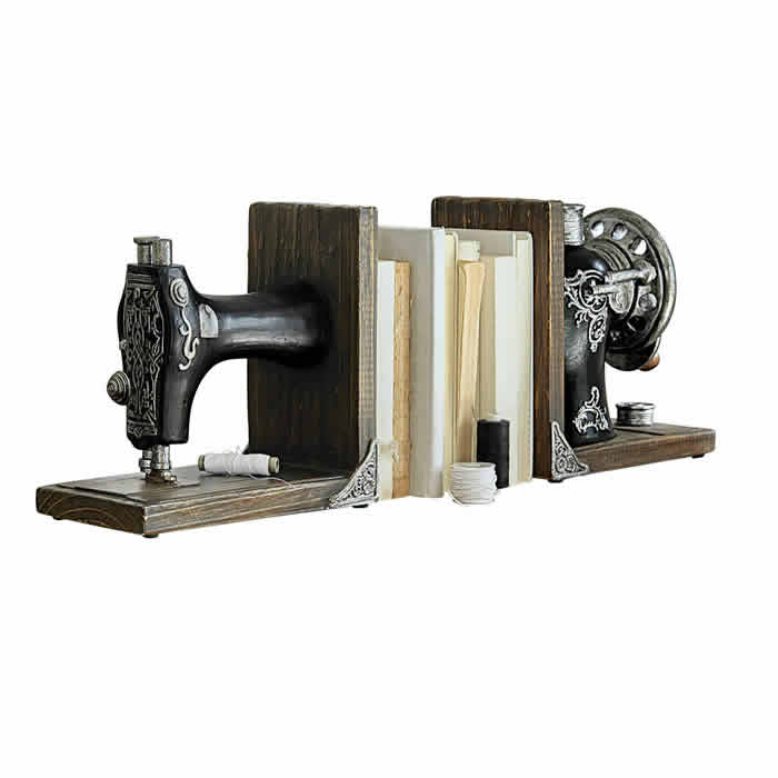 CLARA home nabízí Klasiku i Luxus na dosah - Nechte se inspirovat.• Ahoj, milovníci knih! Už vás nebaví, jak se vám knihy převracejí a dělají nepořádek na policích? Pak jsou pro vás vhodné zarážky na knihy, které knihy elegantně podepřou.• Jakkoli je elektronická čtečka praktická, zůstává neosobní. Protože, abychom byli upřímní, co může být hezčího než listovat knihou stránku po stránce a nosit ji všude s sebou, dokud neuvidíte, kolikrát byla přečtena a jak moc milována? • Hodnotu vytvářejí nejen vysoce kvalitní materiály, ale také jejich výjimečný design. To dokazují i tyto stojany na knihy, které jsou nejen mimořádně dekorativní, ale také velmi praktické.• Protože i v moderní digitální době je stará dobrá kniha pro vášnivé čtenáře stále velmi důležitá. A stojánky na knihy jsou nezbytné k tomu, aby pevně stály na poličce.• Nejenže bezpečně udrží vaše cenné knihy na místě, ale také vytvářejí vysoce dekorativní akcent. • Pohled na starý šicí stroj připomíná doby, kdy paní domu ještě neměla elektrický. Místo toho bylo třeba zkušeností a citu pro používání mechanického nožního pedálu, který zajišťoval správnou a především rovnoměrnou rychlost šití. V této nostalgické sadě 2 zarážek pro knihy s láskou ručně a klamavě realisticky ztvárnil jeden z umělecky navržených modelů, které byly v té době mnohem víc než jen nástrojem. Díky bohatě propracovanému kování, typickému setrvačníku, cívce s nití připevněné k horní části a cívce i jemně zaoblenému tělu stroje se jednalo o umělecká díla, která měla v obývacím pokoji své stálé místo. • Pomocí sady 2 stojánků na knihy poskytnete svým knihám na polici nebo ve vitríně potřebnou oporu obzvlášť stylovým a dekorativním způsobem. • Zdařilé spojení funkčnosti a estetiky - a mimořádně stylová dekorativní sada na poličku nebo stůl.• Termín "knižní zarážka" označuje zařízení, které slouží k přidržování knih na poličce, aby nemohly spadnout. Podobně jako v případě dominového efektu může při převrácení knihy dojít k převrácení nebo dokonce pádu sousedních knih a dalších předmětů na polici. Knižní zarážky udrží knihy na místě a zabrání jejich převrácení. • Velikosti: cca. 23/45,5/14cm.• Váha: cca. 3,9kg. • 2 dílná sada. • Barva: hnědá/černá.• Materiál: Polyresin• Elegantní design.