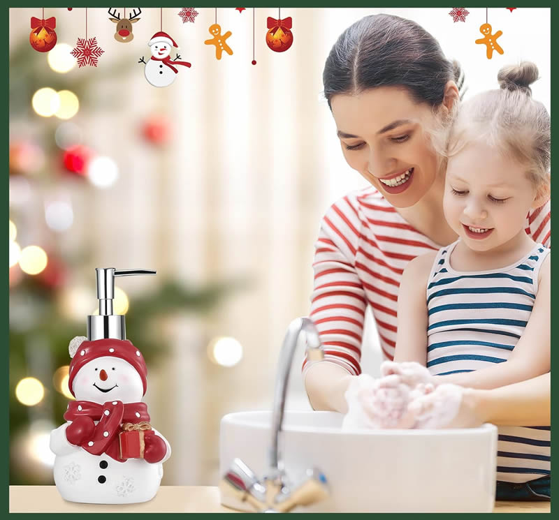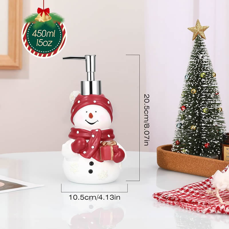 CLARA bedding nabízí Luxus na dosah—Bohatý výběr materiálů, barev a vzorů.• Dávkovač ve tvaru sněhuláka pro útulnou atmosféru během svátků.• Leze napnit tekutým mýdlem, šampónem, sprchovým gelem, prostředkem na nádobí, lotion, odličovací mléko, masážní olej, tělový olej, dezinfekční prostředek na ruce, apod...• Dávkovač vhodný do koupelny, kuchyně, k umyvadlu, ke dřezu... , ale i do kosmetického salonu pro krásnou atmosféru svátků.• Zimní elegance.• Objem: 450ml.• Dodáváno bez mydla.• Dávkovač mýdla z kvalitního pryskyřičného materiálu je velmi robustní a má dlouhou životnost. Hlava dávkovače je nerezová a odolná proti vytečení, lze ji snadno stlačit a má dlouhou životnost.• Hezké i jako vánoční dárek.• Příjemné vánoční období.