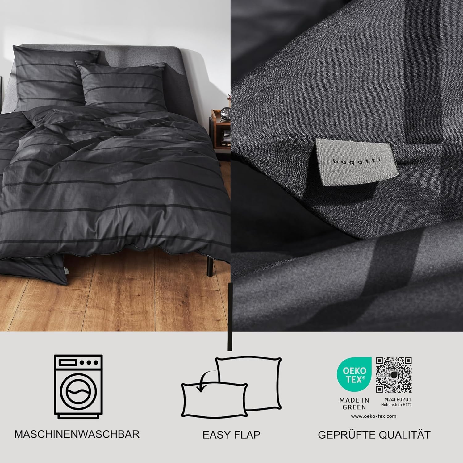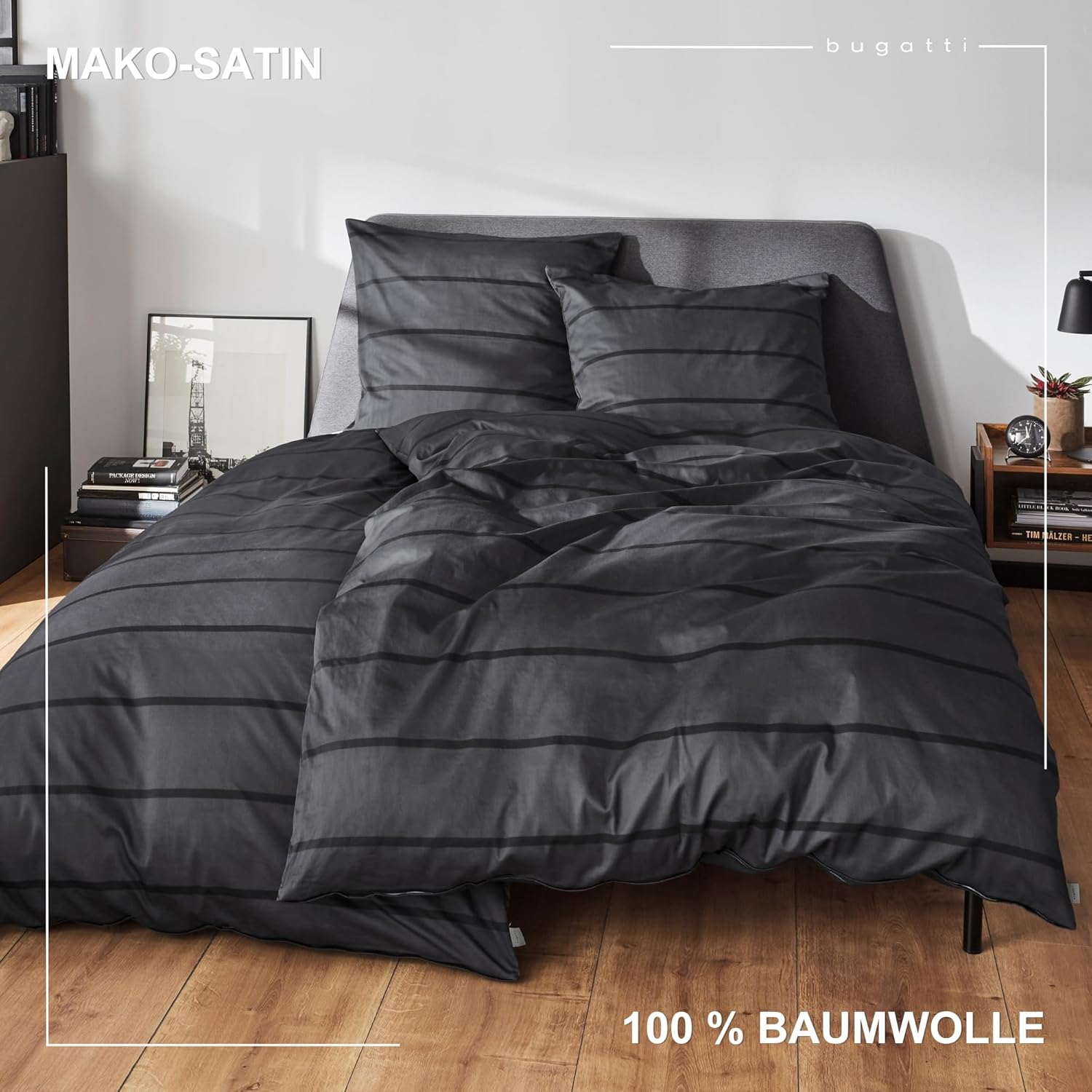 Povlečení - bugatti - Stripe - Mako Bavlněný Satén - Loft Style - Antracitová / Černá