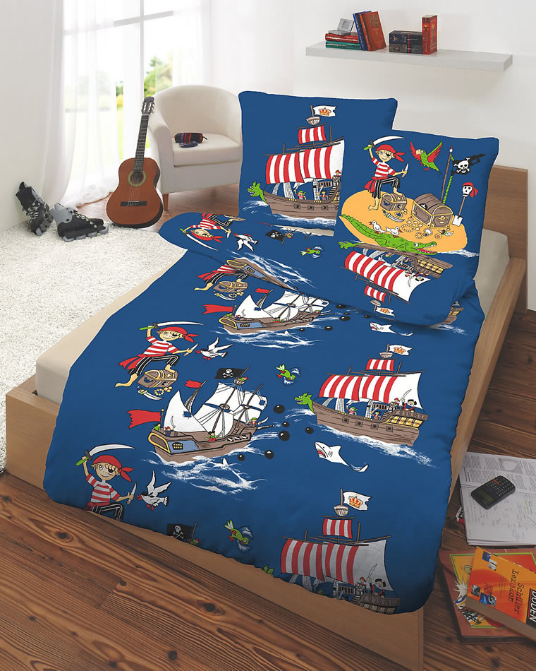 CLARA bedding nabízí Luxus na dosah—Bohatý výběr materiálů, barev a vzorů.• Dětská ložní souprava - Pirátský Ostrov Pokladů a Pirátský Koráb. • Příjemná dobrodružství s piráty na opuštěném ostrově pokladů a na moři při snění.• Stylový potisk.• Kvalitní tisk.• Příjemný, prodyšný materiál. • 100% bavlna - linon nebo 100% bavlna - biber (jemný flanel).• Příjemně hladký materiál nebo hřejivý materiál s jemným vlasem.• Snadná údržba. Praní do 60°C.• Vhodná barva prostěradla Bílá, nebo dle výběru.• Příjemný spánek.