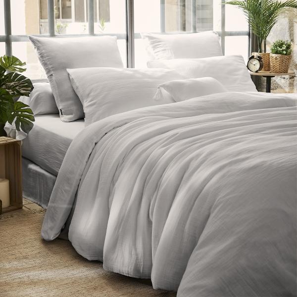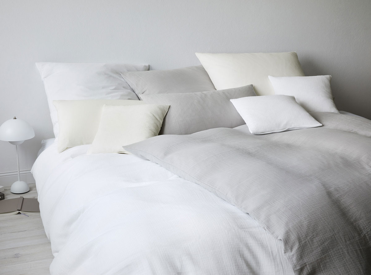• Lehká struktura mušelínu dodává tomuto jednobarevnému ložnímu povlečení jemnou živost.